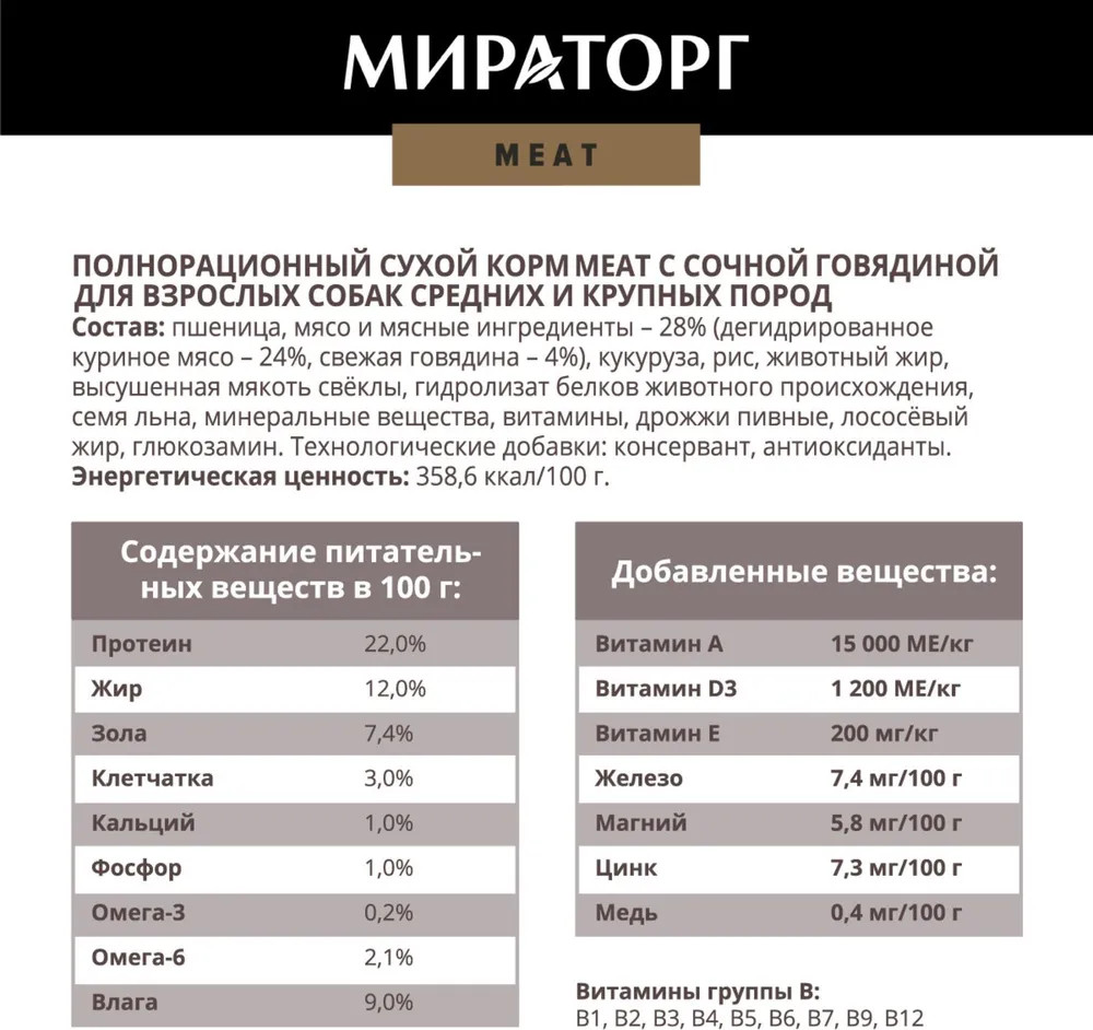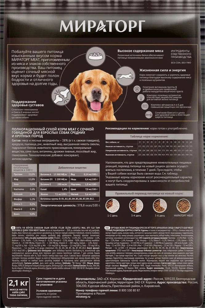 Мираторг Корм для взрослых собак средних и крупных пород с сочной говядиной