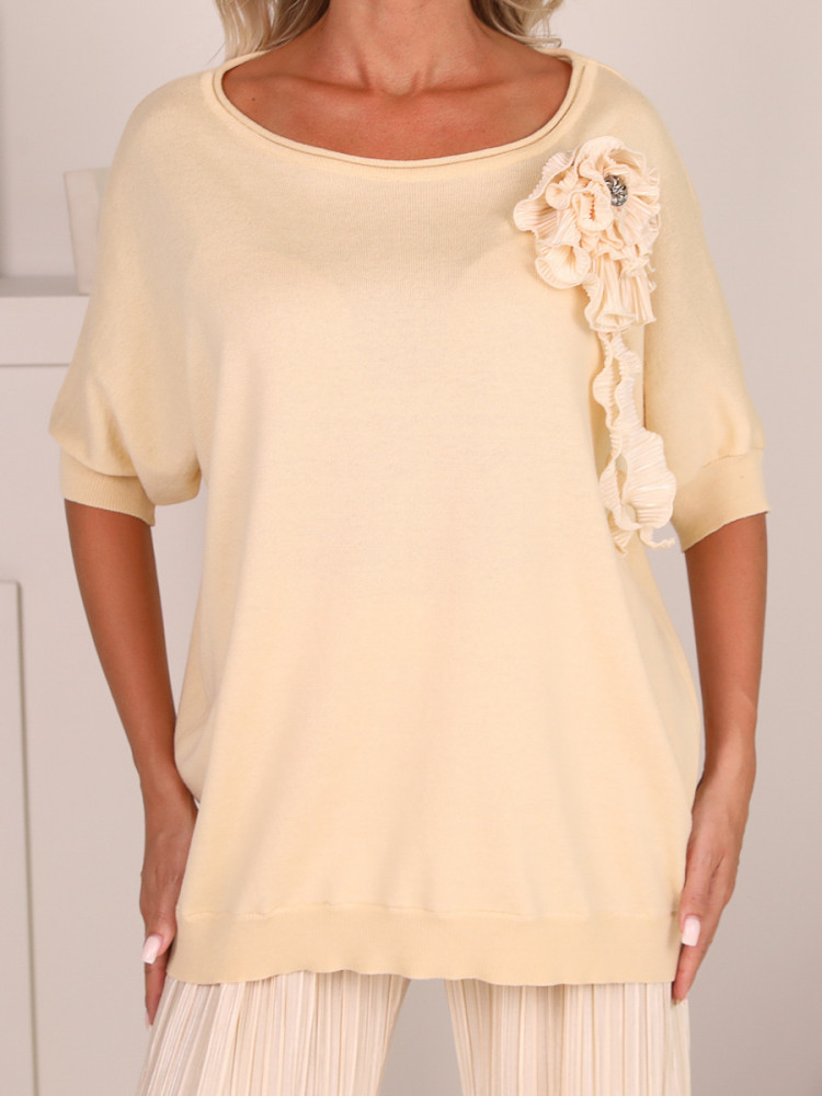 Костюм состоит из блузки и брюк. Круглый вырез горловины. Не упустите возможность приобрести этот стильный и практичный костюм, который подчеркнет вашу индивидуальность и элегантность.