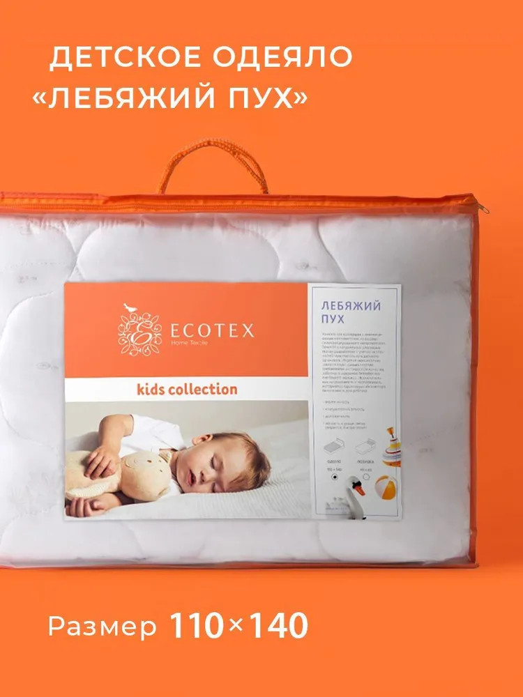 Детское одеяло из «лебяжьего пуха» от производителя «Ecotex» долговечно, практично, легко стирается в домашних условиях и быстро сохнет, экологично и обладает высокой воздухопроницаемостью. Удобное одеяло для детей «Лебяжий пух» от Ecotex мягкое, пышное, легкое и приятное на ощупь, хорошо держит форму и быстро восстанавливает объем, оно прекрасно пропускает воздух и поддерживает оптимальную температуру тела малыша во время сна.