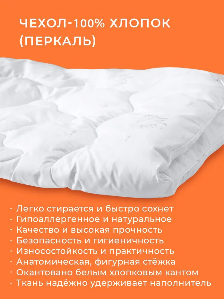 Чехол детского одеяла изготовлен из натуральной, особо прочной хлопковой ткани - перкаль, которая надежно удерживает наполнитель внутри, обеспечивая долгий срок службы изделия, стильно оформлен и окантован хлопковым кантом белого цвета.