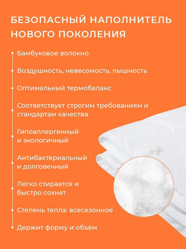 Если по какой-то причине натуральный наполнитель не нравится или противопоказан ребенку, можно приобрести детское одеяло с наполнителем из экзотичных волокон бамбука – современной разработки в области текстильного производства. Натуральное бамбуковое волокно обладает антибактериальным и гипоаллергенным свойством, хорошо впитывает влагу, а хлопок чехла детского одеяла соответствует самым высоким европейским стандартам гигиеничности и экологичности.