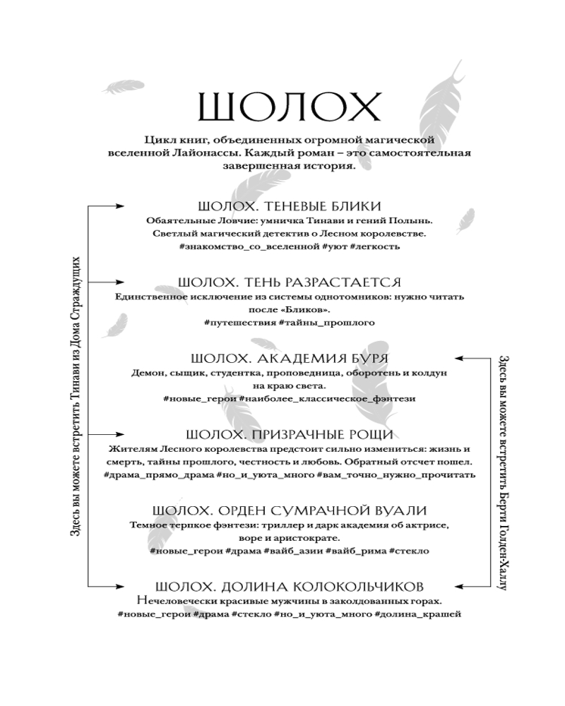 Серия: Young Adult. Книжный бунт. Фантастика (покет большого формата) Прошлое Лесного королевства полно секретов — и Ловчей Тинави из Дома Страждущих предстоит раскрыть их, иначе мир рискует сгинуть во тьме древнего зла, вышедшего из Врат Хаоса. Но Тинави не одна будет распутывать клубок смертельно опасных тайн: компанию ей составит гениальный колдун Полынь, двое старых друзей, взбалмошный авантюрист и... падший бог-хранитель. Кем они станут, пройдя полный опасностей путь, и смогут ли сохранить свой внутренний свет? |