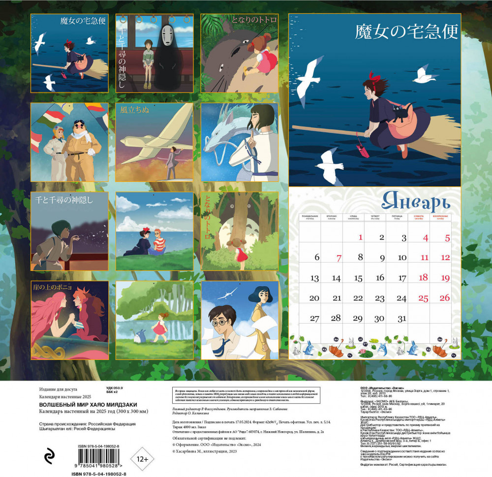 Календарь настенный на 2025 год «Волшебный мир Хаяо Миядзаки»В данный момент этот товар отсутствует в продаже. Возможно, у нас найдется аналогичный или похожий товар здесь. Серия: Календари настенные 2025 (300×300) Шедевры Хаяо Миядзаки находят отклик в сердцах зрителей любых возрастов во всем мире благодаря его уникальному визуальному языку, теме детства, раскрытой с особенной любовью и добротой, и органичному сочетанию фольклорных мотивов и актуальной проблематики. Всем сердцем любите работы мастера? Тогда этот календарь станет идеальным украшением вашего дома! Авторские иллюстрации от художницы Марии Хасарбиевой наполняют его эстетикой волшебного мира Хаяо Миядзаки, мира детства, искренности и преданности своему идеалу. Внутри вас ждут милые истории и красочные иллюстрации, а также сетка с основными праздниками и местом для записи важных событий. Удобный формат 300×300 мм позволит повесить его абсолютно везде. Подарите себе кусочек хорошего настроения на весь год! |