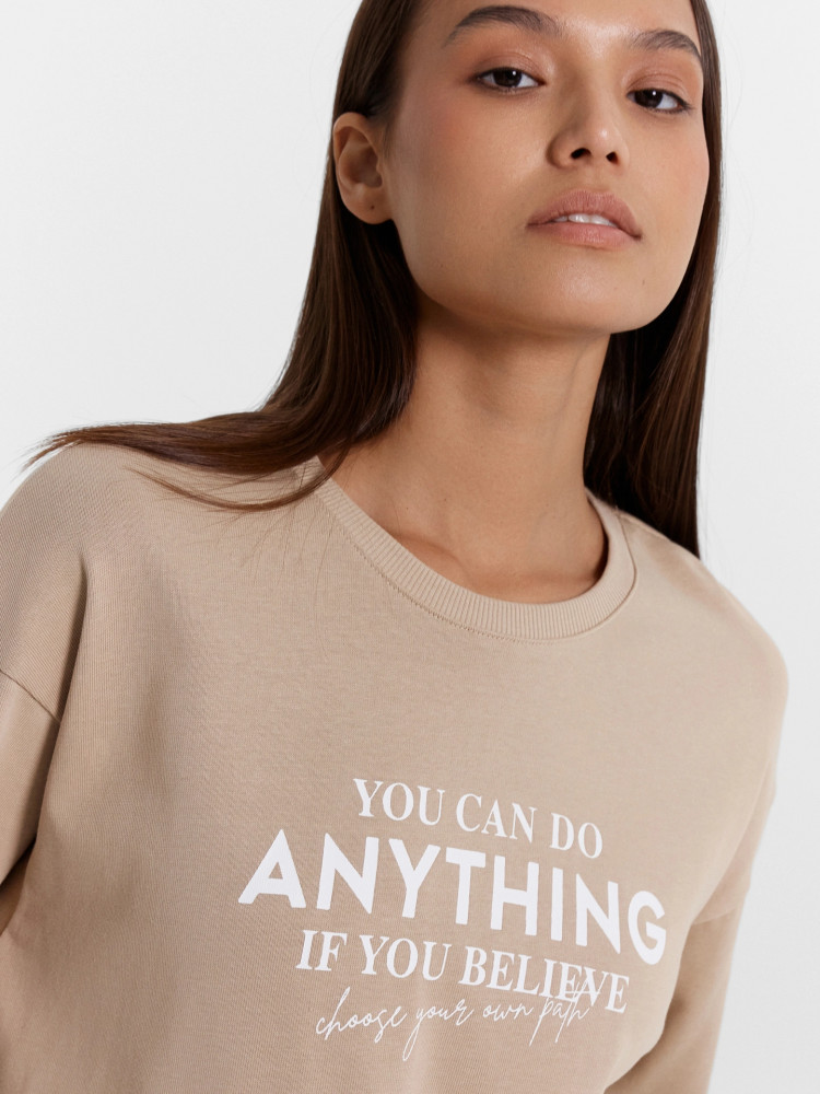 Отличная вещь, комфортная, удобная, стильная, плотный трикотаж, хлопок 100%. Взяла размер 48, мой 48-50, в самый раз получилось.