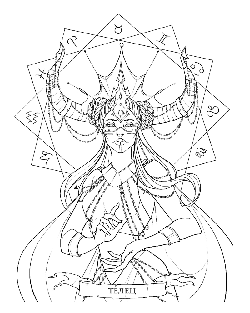Откройте для себя магию астрологии вместе с этой таинственной раскраской знаков Зодиака и планет от современной художницы Кармы Виртанен!