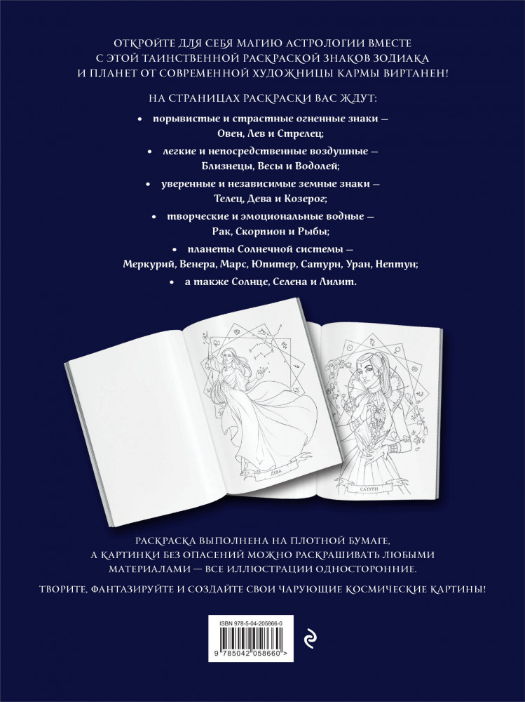 | Загадки астрологии. Знаки зодиака и планеты. Магическая раскраска-антистресс Карма Виртанен