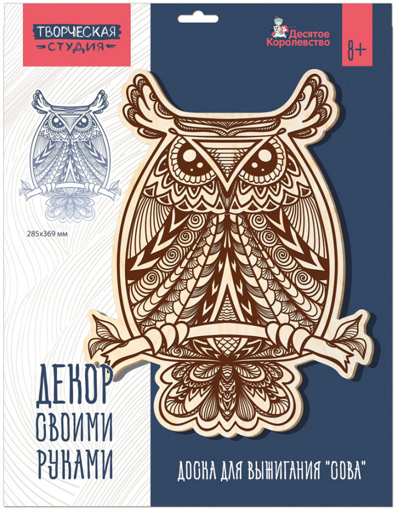 Доска с рисунком для выжигания «Сова» А3 (конверт) сделана из высококачественной сертифицированной фанеры. Рисунок нанесен с одной стороны методом шелкографии и по уровню сложности предполагает наличие определенных навыков выжигания у ребенка или помощи родителей. С помощью прибора для выжигания нанесите рисунок по линиям, и у Вас получится красивое декоративное панно с изображением cовы, которое станет замечательным украшением интерьера. При желании изображение можно раскрасить красками, фломастерами или цветными карандашами. Процесс выжигания развивает мелкую моторику рук, внимание, усидчивость, творческие способности ребенка и фантазию. |