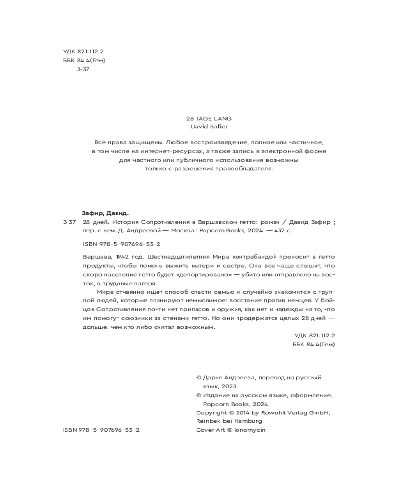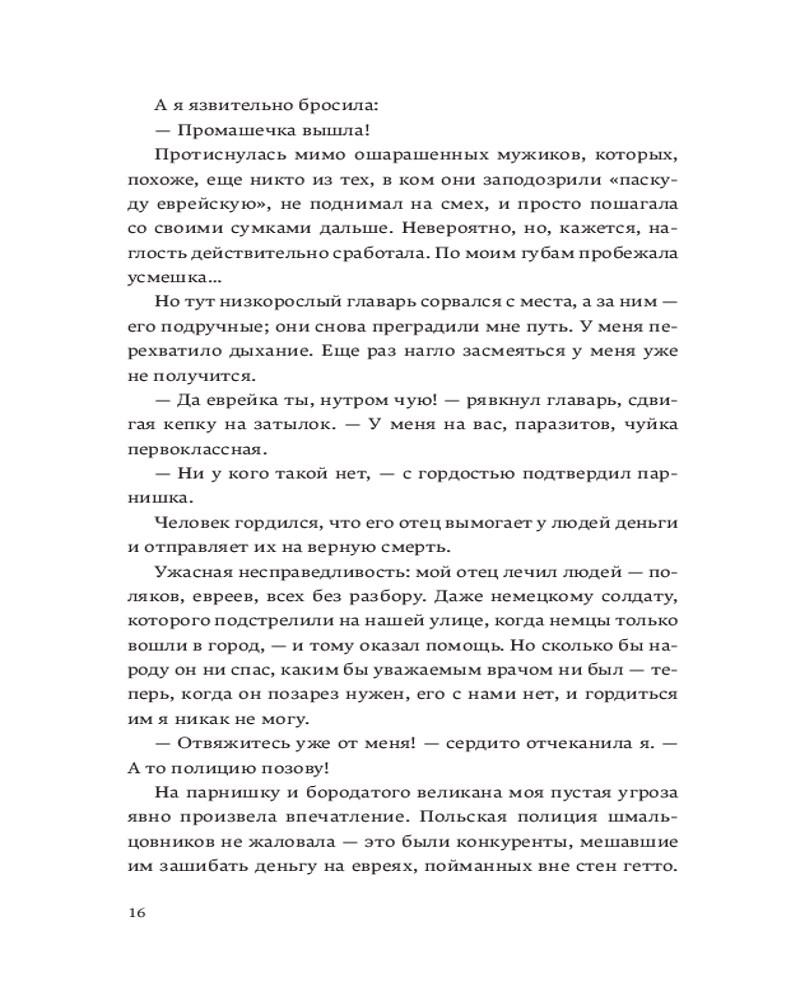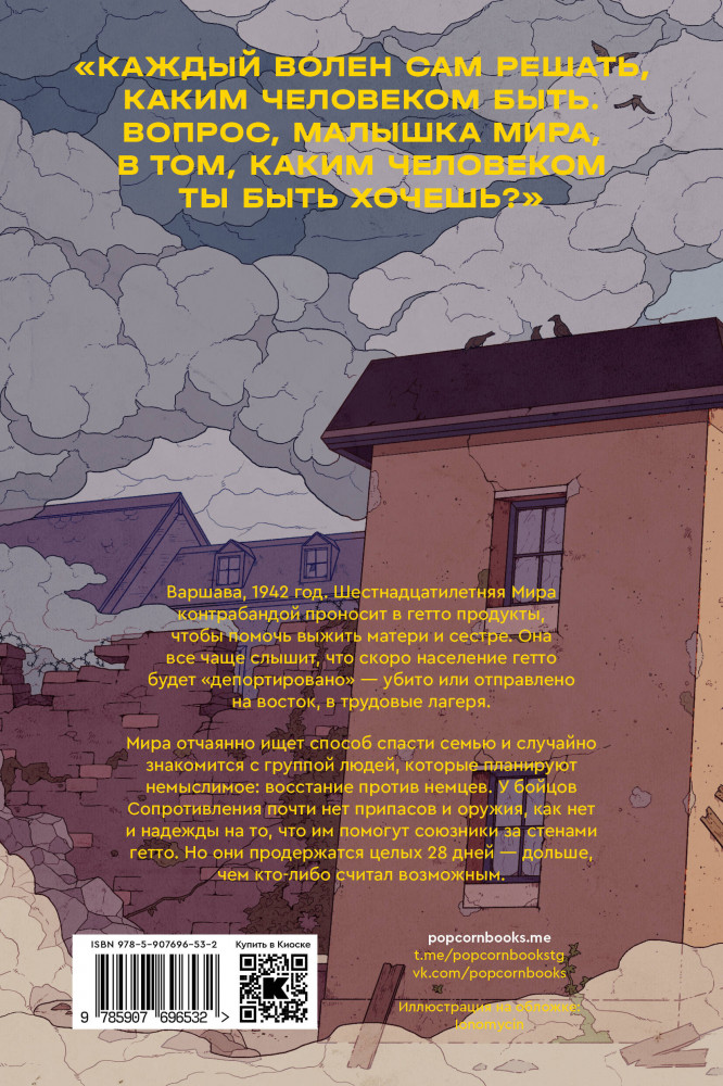 Варшава, 1942 год. Шестнадцатилетняя Мира контрабандой проносит в гетто продукты, чтобы помочь выжить матери и сестре. Она все чаще слышит, что скоро население гетто будет «депортировано» ― убито или отправлено на восток, в трудовые лагеря. |
