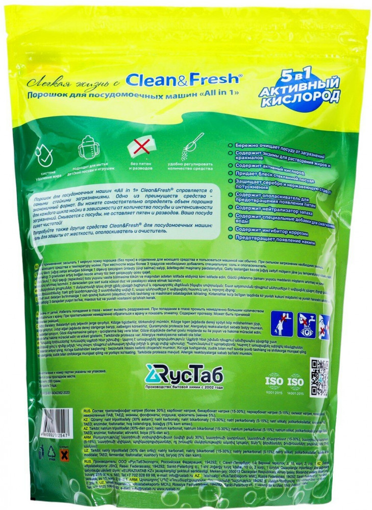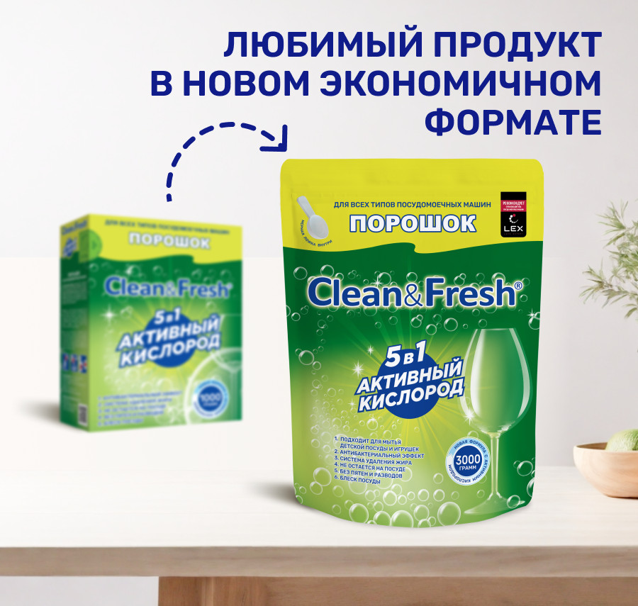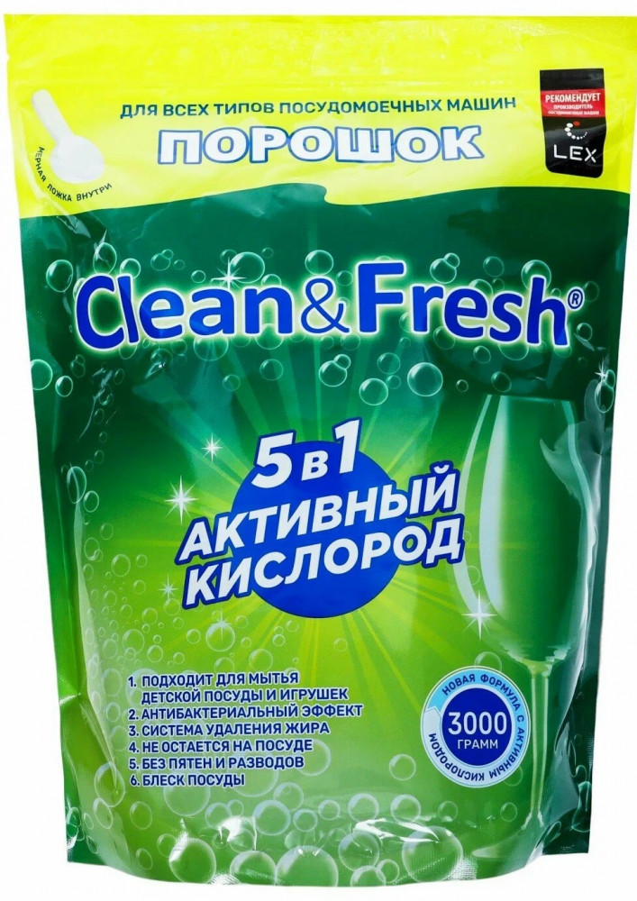 Clean&Fresh Порошок для посудомоечных машин «5 в 1 Активный кислород»