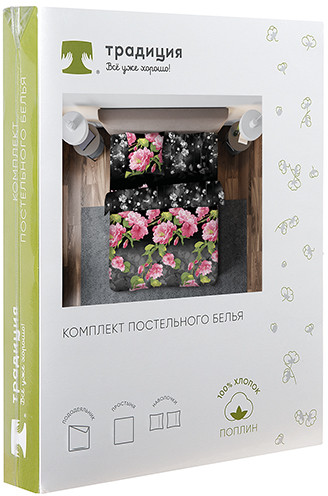 Комплект постельного белья «Традиция» изготовлен из набивного поплина плотностью 118 гр/кв.м. Поплин — хлопчатобумажная ткань, благодаря плотному переплетению нитей имеет высокую прочность и гладкость.Ткань мягкая и приятная к телу. Полотно, покорившее Европу, а за ней и весь мир, сегодня самый востребованный материал для постельного белья. Ткань не линяет, естественная усадка не превышает норму, обладает низкой сминаемостью, качество пошива фабричного уровня. Пододеяльник имеет прорезь, наволочки — клапан, простыня содержит открытые кромки. Дизайн «Южная ночь (чёрный)» входит в постоянную коллекцию. Предложенная комплектация может незначительно отличаться от фотоизображения.