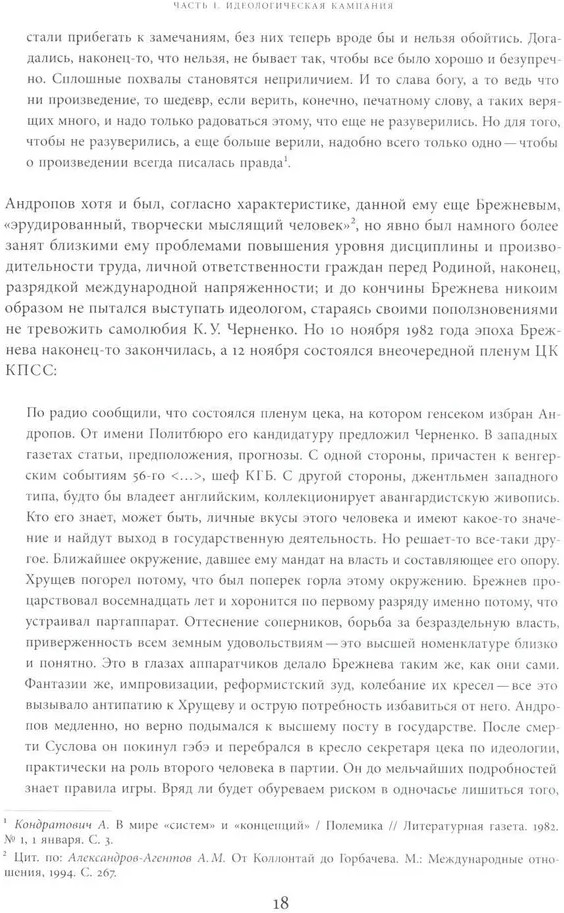 Эпоха Андропова была краткой и запоминающейся, однако мало кто знает о развернутой тогда идеологической кампании по борьбе с отступлениями от исторической правды. Петр Дружинин, известный специалист по истории гуманитарной науки, старший научный сотрудник Института русского языка им. В. В. Виноградова РАН, на основании как опубликованных, так и неизвестных архивных источников реконструирует эту идеологическую кампанию, выстраивая на первый взгляд несвязанные события в строгую последовательность. Читатель узнает, как разворачивался маховик идеологической кампании: сначала партийное решение, затем направляющие статьи в журналах и газетная брань с участием тех, кто согласился выступить на стороне государства; и, как результат, жертвы этой кампании — известные литераторы того времени. Совершенно неожиданно в центре кампании оказался поединок двух колоссальных фигур русской культуры: Натана Эйдельмана, знаменитого писателя и историка, и Ильи Зильберштейна, известного ученого и коллекционера. И даже далекие от идеологии люди встали в тот момент перед нравственным выбором: чью сторону им принять. |