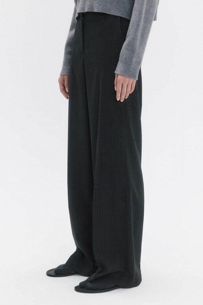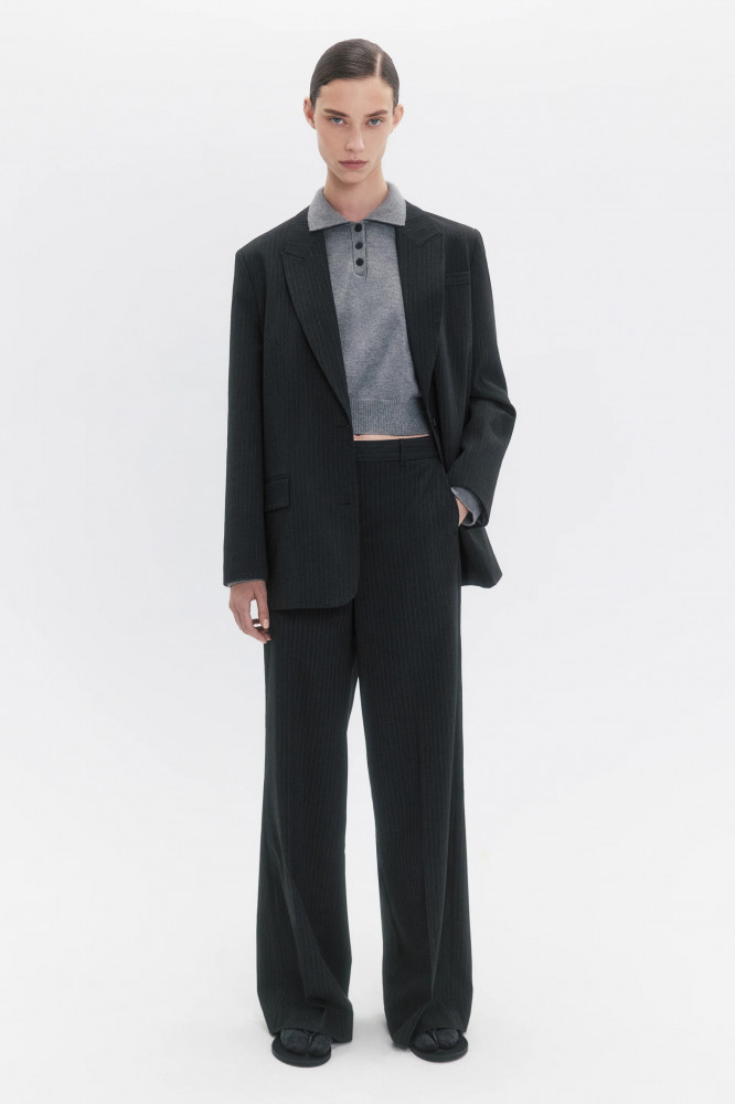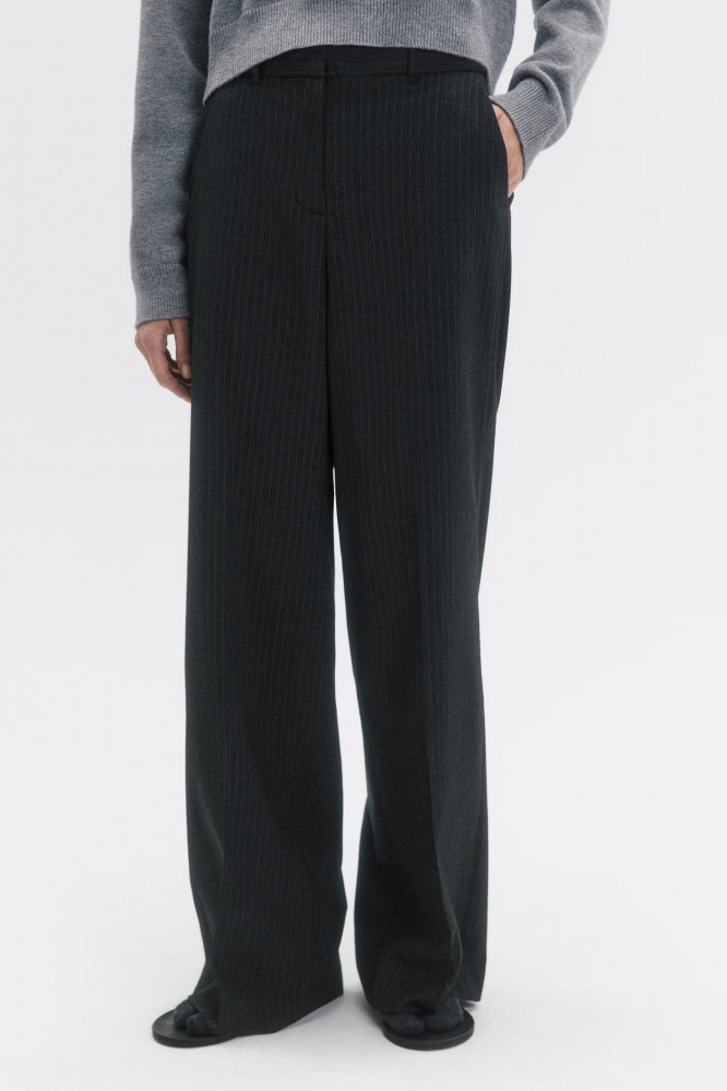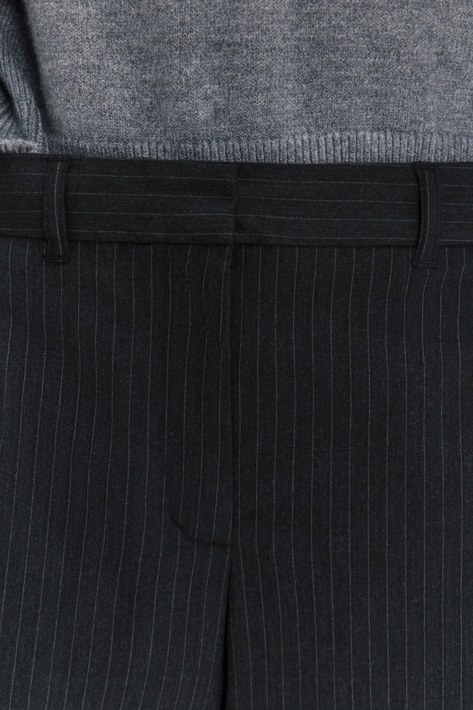 Прямые женские брюки свободного кроя из легкой, гладкой костюмной ткани. Классическая средняя посадка подчеркивает фигуру и акцентирует внимание на талии. Застежка на молнию и потайной крючок спереди, шлевки для ремня. Два боковых кармана с отрезным бочком. Длинные прямые штанины со стрелками. Серые костюмные брюки в тонкую вертикальную полоску. Универсальные и суперудобные костюмные штаны для образов в школу, университет или офис. Создавай самые комфортные и стильные аутфиты по любому поводу и на любой сезон. Комбинируй их с облегающими жилетками на голое тело и туфлями-слингбэками из новой коллекции Befree. Или сочетай брюки с расслабленным оверсайз-верхом, но оставь туфли с острым носом и добавь объемную сумку. Прямые брюки в полоску — идеальная основа для повседневных луков в любом стиле и для любого настроения. Заверши образ удобной обувью и любимыми аксессуарами.