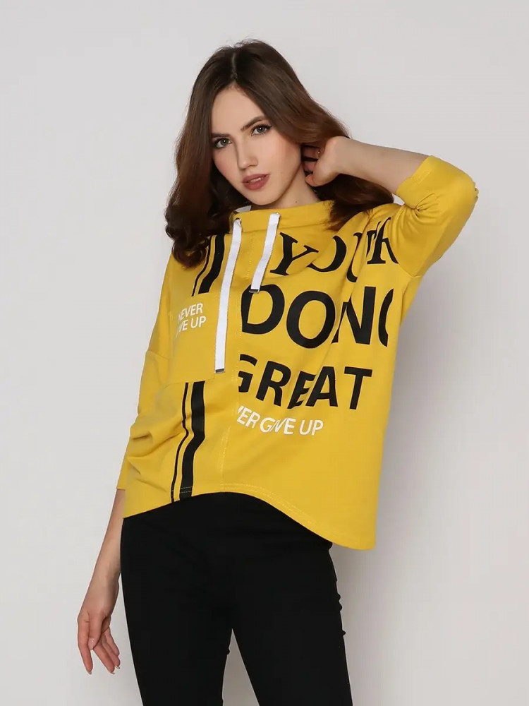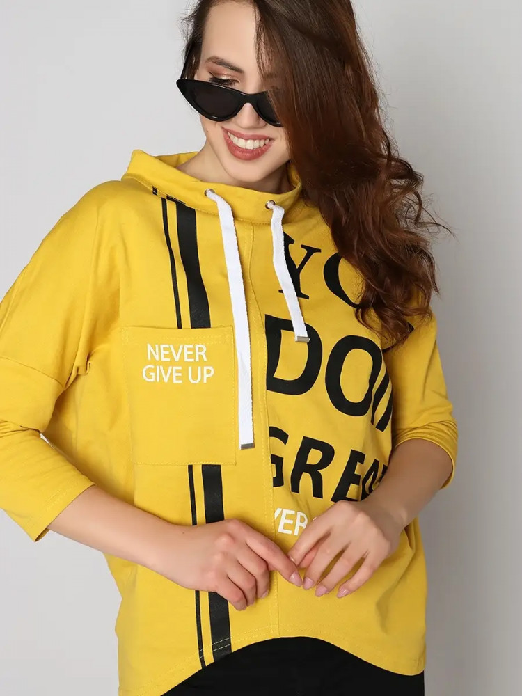 Женский легкий оверсайз джемпер станет комфортной незаменимой вещью для создания стильных домашних и спортивных повседневных аутфитов. Стильный женский свитшот с длинным рукавом. Выполнен из трикотажа. На груди и рукаве оригинальные принты. Джемпер - актуальное решение для девушки в тренде. Мягкое худи из футера служит стильным акцентом, делая образ ярким, задавая настроение. Высококачественный трикотаж держит форму, не сковывает движения. Джемпер свободного силуэта. Выполнен из эластичной ткани. Трикотажная облегченная модель без подкладки с капюшоном внахлест и объемными длинными рукавами на резинке комфортно сидит по фигуре и подарит свободу, что также отлично подойдет для беременных, дышащая ткань приятна к телу, а приглушенные оттенки позволят создавать базовые образы. Среди многообразия фасонов худи женское оверсайз идеально подойдёт для вечерней прогулки по парку, похода в гости или любого другого случая, когда вы хотите выглядеть стильно и безупречно. Носите свитшот женский самостоятельно дополнив образ джинсами или брюками карго. Смело комбинируй эту кофту с брюками палаццо, с джинсами и юбками в повседневных образах, с велосипедками в спортивных аутфитах, а также с шортами бермудами для модных летних луков. С этим джемпером ты будешь выглядеть стильно и женственно!