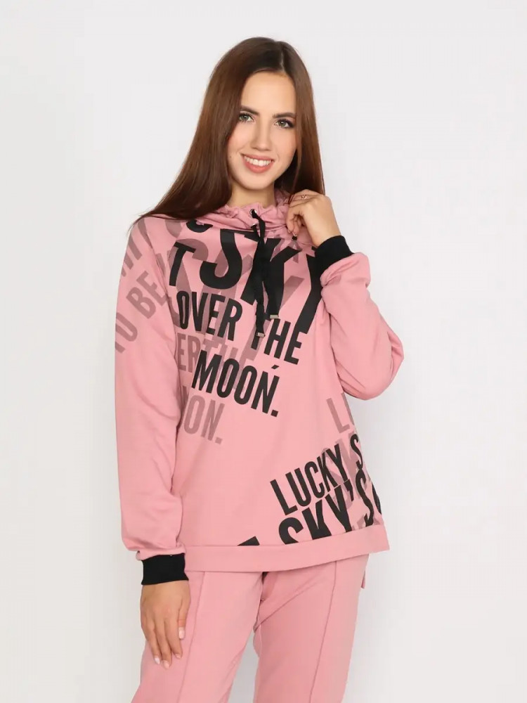 Женский спортивный худи высокого качества с принтом в виде надписей. Джемпер выполнен из 100% хлопка, ткань футер. Крой свободный, с небольшими разрезами по бокам и максимально идеальной посадкой по фигуре. Рукава длинные с притачными манжетами, прикрывают запястья. Воротник хомут, регулируется шнуром - подчеркивает шею и овал лица. Край удлиненный сзади. Подходит для взрослых женщин и юных девушек. Сочетается со спортивными брюками, джинсами и шортами. Универсальная модель, подходит для любого типа фигуры, включая большие размеры. Джемпер, кофта, пуловер являются одними из самых популярных моделей одежды круглый год. Лучший вариант для активного отдыха, спорта, дома и просто повседневной одежды. Широкий размерный ряд позволяет удовлетворить потребности женщин любой комплекции. Создавайте стильные образы, сочетая как с классикой, так и с ультрамодными вещами. Отлично подходит в качестве подарка женщинам любого возраста.*Изделие на фотографиях представлено на модели 44 р-р 173 см рост.