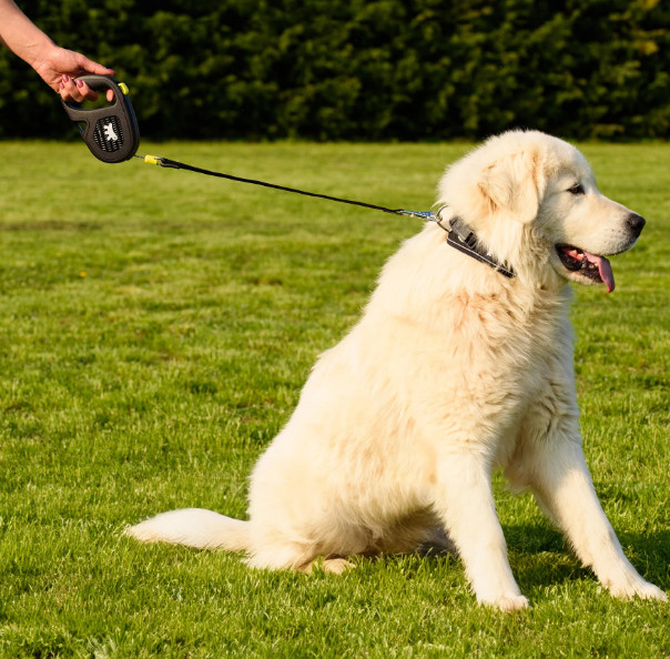 Ручка рулетки эргономичная. Есть также отверстие для крепления держателя для контейнера с гигиеническими пакетами или других аксессуаров, которые могут понадобиться во время прогулки. Стальной карабин с вертлюгом. В производстве использованы качественные материалы, а сама конструкция неоднократно протестирована на прочность и эргономику. Однако для гарантированной надежности производитель не рекомендует превышать установленный максимальный вес собаки, а именно 35 кг.