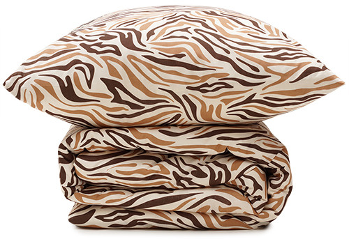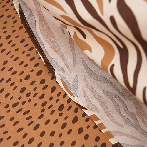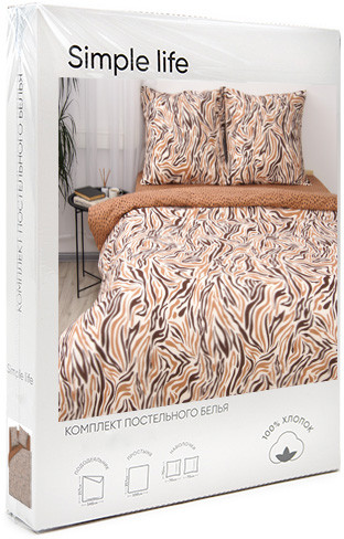 Комплект постельного белья изготовлен из набивной бязи плотностью 120 гр/кв.м. Бязь — хлопчатобумажная плотная ткань полотняного переплетения. В настоящее время бязь — основной вид тканей для пошива постельного белья. Бязевое бельё выдерживает «бесконечное» число стирок, ткань не линяет, естественная усадка не превышает норму, обладает низкой сминаемостью, качество пошива фабричного уровня. Пододеяльник имеет прорезь, наволочки — клапан, европростыня содержит открытые кромки. Пододеяльник и наволочки комплекта сшиты из основной ткани, европростыня из ткани-компаньона, что придает белью особый стиль.