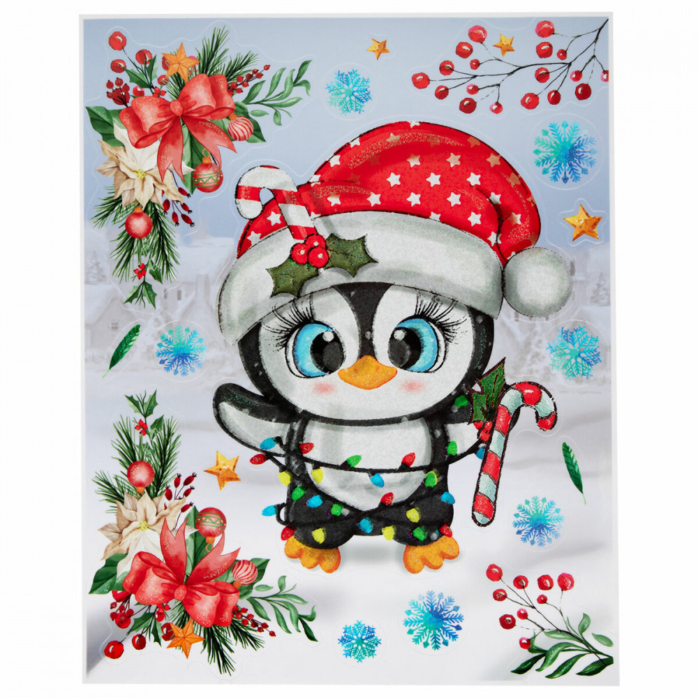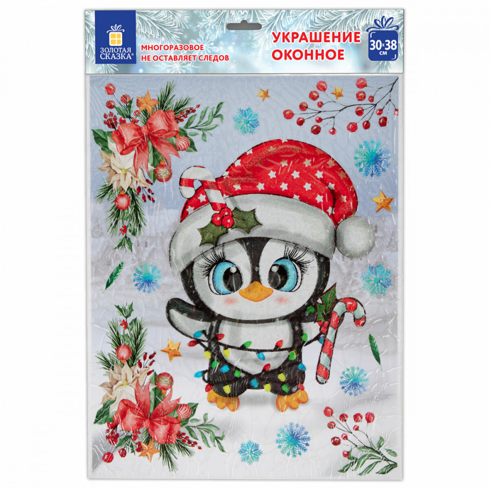 Золотая сказка Наклейки для окон многоразовые двусторонние «Пингвин»
