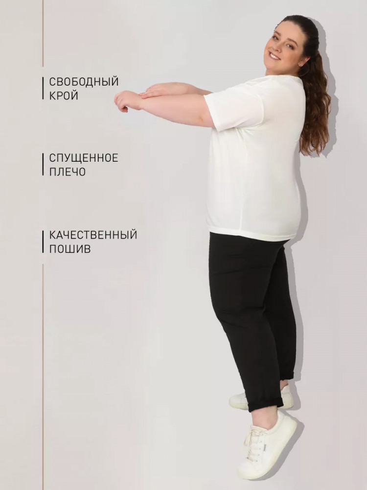 Наш бренд Fashion Margo - это идеальный выбор для любой дамы, которая хочет выглядеть стильно и привлекательно в любое время года. Футболка изготовлена из мягкой плотной натуральной хлопковой ткани, которая обеспечивает комфорт и свободу движений. Материал дышащий, приятный к коже, прочный, хорошо сохраняет форму, не садится после стирки (при соблюдении рекомендаций по уходу). Кроме того, материал не выгорает на солнце, это отличный выбор для тренировок летом, а также солнечной теплой весной или осенью. Фактура тонкой ткани трикотажная, гладкая и нежная. Страна производства Россия. Вещь универсальная, подходит для весенних, осенних и летних месяцев. Покрой удлиненный, не слишком короткий, свободный, на худых будет смотреться как легкий оверсайз. Просторный крой не стесняет движения. Она подойдет даже будущим мамам, девушкам с пышными форами и кормящим женщинам. Вырез горловин классический. В нашем магазине вы найдете эту модель в размерах от 44 до 68. Широкий размерный ряд позволяет выбрать подходящую модель женщине любого телосложения. Крутая однотонная туника с рисунком будет классно смотреться как на высокой, так и на невысокой девушке. Модная футболка идеально подходит для девочек - подростков, взрослых девочек и даже бабушек, которые хотят выглядеть красиво в школе, на офисной работе или во время прогулок на улице. Футболочка нарядная также хороша для спортивных занятий, таких как: фитнес, йога, танцы, бег, тренировки в спортзале, школьные уроки физкультуры и многое другое. Это прекрасная вещь для повседневной носки, а также для особых случаев, таких как фотосессии. Изделие можно носить дома, на даче или пляже. Милая модная стильная современная из хлопка - это классика женской моды, которая должна быть в гардеробе каждой. Трендовая туничка поможет создать прикольный образ в уличном стиле, подходящий на все случаи жизни.