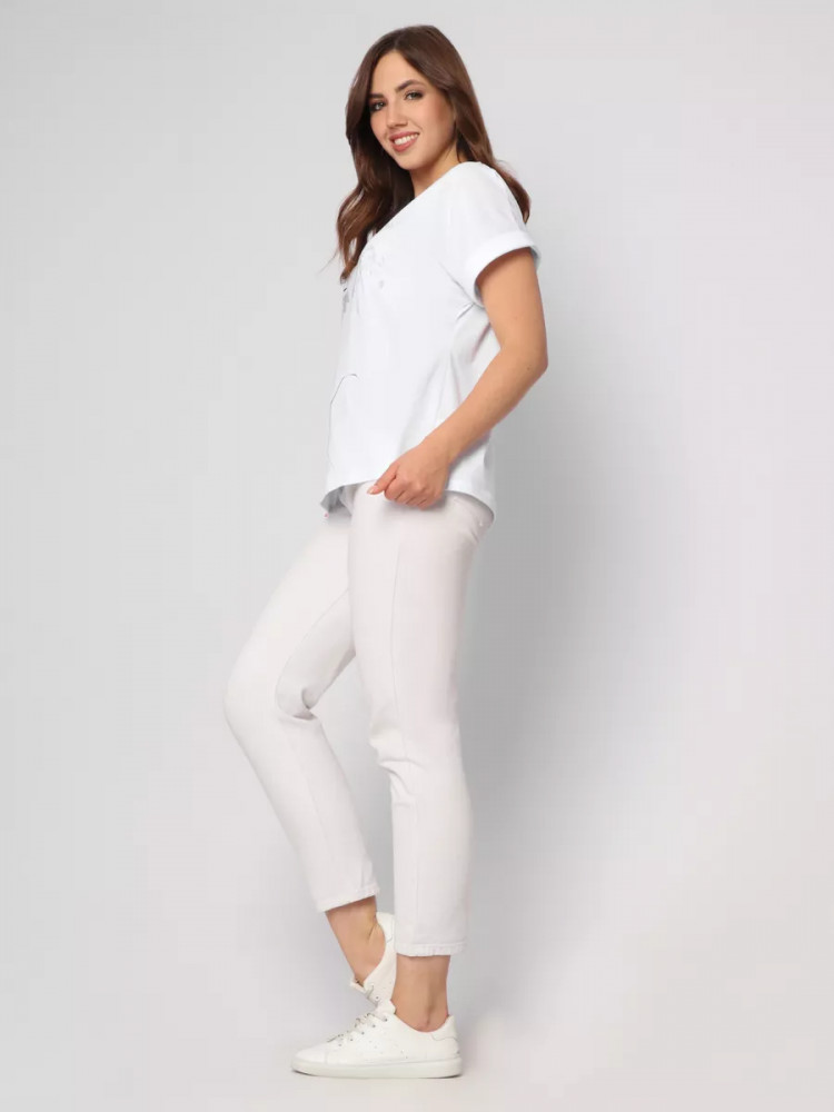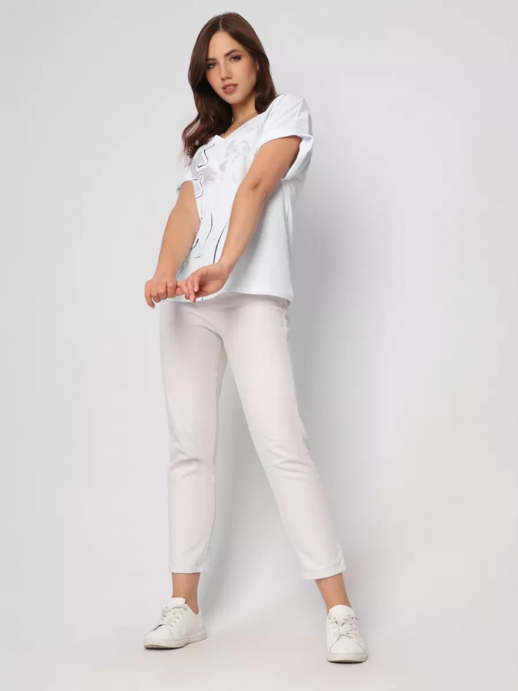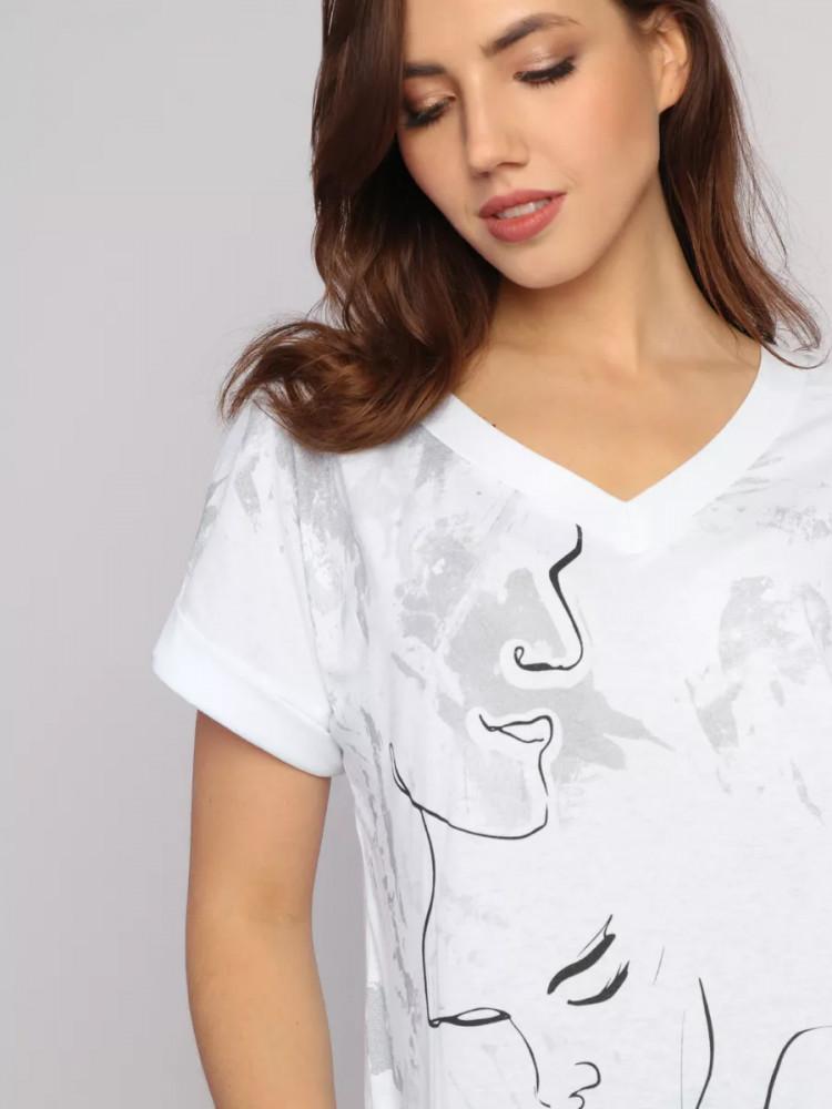 Наш бренд Fashion Margo - это идеальный выбор для любой дамы, которая хочет выглядеть стильно и привлекательно в любое время года. Футболка изготовлена из мягкой плотной натуральной хлопковой ткани, которая обеспечивает комфорт и свободу движений. Материал дышащий, приятный к коже, прочный, хорошо сохраняет форму, не садится после стирки (при соблюдении рекомендаций по уходу). Кроме того, материал не выгорает на солнце, это отличный выбор для тренировок летом, а также солнечной теплой весной или осенью. Фактура тонкой ткани трикотажная, гладкая и нежная. Страна производства Россия. Вещь универсальная, подходит для весенних, осенних и летних месяцев. Покрой удлиненный, не слишком короткий, свободный, на худых будет смотреться как легкий оверсайз. Просторный крой не стесняет движения. Она подойдет даже будущим мамам, девушкам с пышными форами и кормящим женщинам. Вырез горловин классический. В нашем магазине вы найдете эту модель в размерах от 44 до 68. Широкий размерный ряд позволяет выбрать подходящую модель женщине любого телосложения. Крутая однотонная туника с рисунком будет классно смотреться как на высокой, так и на невысокой девушке. Модная футболка идеально подходит для девочек - подростков, взрослых девочек и даже бабушек, которые хотят выглядеть красиво в школе, на офисной работе или во время прогулок на улице. Футболочка нарядная также хороша для спортивных занятий, таких как: фитнес, йога, танцы, бег, тренировки в спортзале, школьные уроки физкультуры и многое другое. Это прекрасная вещь для повседневной носки, а также для особых случаев, таких как фотосессии. Изделие можно носить дома, на даче или пляже. Милая модная стильная современная из хлопка - это классика женской моды, которая должна быть в гардеробе каждой. Трендовая туничка поможет создать прикольный образ в уличном стиле, подходящий на все случаи жизни.