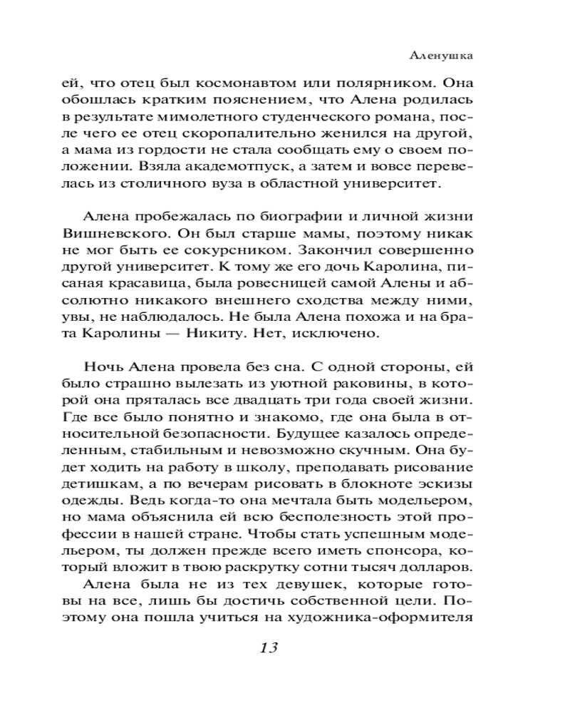 АлёнушкаАлександра Васильевна Миронова В данный момент этот товар отсутствует в продаже. Возможно, у нас найдется аналогичный или похожий товар здесь. Серия: Вслед за мечтой. Романы А. Мироновой Скромная учительница рисования Алена Васнецова — наследница огромного состояния и астрономических долгов. У нее есть только три месяца, чтобы выплатить полмиллиона долларов. |