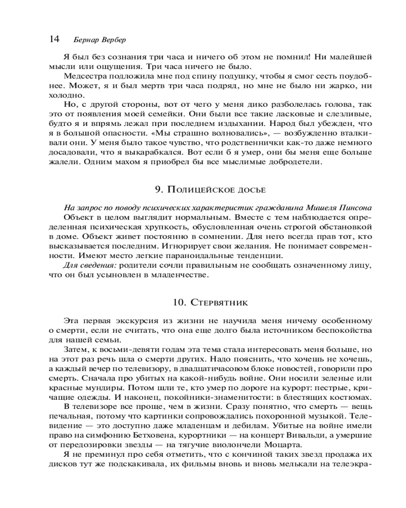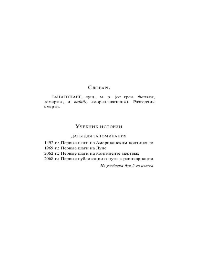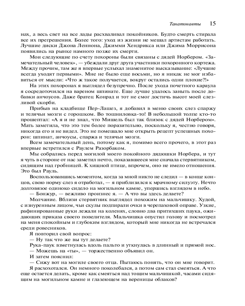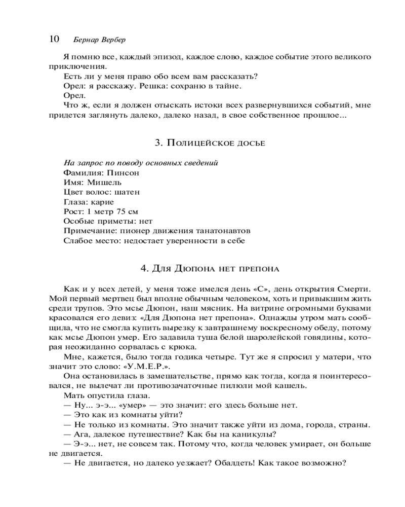 Танатонавты. Империя ангеловВ данный момент этот товар отсутствует в продаже. Возможно, у нас найдется аналогичный или похожий товар здесь. Серия: Бесконечная вселенная Бернара Вербера в одном томе Смерть. Точка невозврата, которая заставляет живых ощущать растерянность и страх. Оттуда еще никто не возвращался и там, за гранью жизни, никто еще не бывал в качестве гостя. Однако с изобретением танатонавтики все меняется. Смельчаки Мишель Пинсон и Рауль Разорбак изобрели способ путешествовать по краю теней, а это повлекло за собой непредсказуемые последствия — ведь каждая конфессия желает доказать свою правоту и колонизировать загробный мир. |