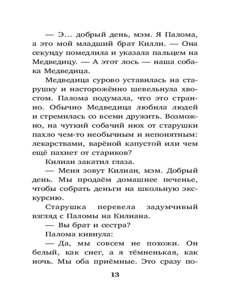 Серия: Волшебный старый дом. Приключенческое фэнтези Палома, Килиан и Медведица — идеальная команда для спасения мира. Вы не верите? Ну, посудите сами. Килиан страшно умный мальчик десяти лет, который ничего не забывает. Палома никогда не отступит перед трудностями и отличается прекрасным воображением. А Медведица — большая собака, которая защитит их обоих. |
