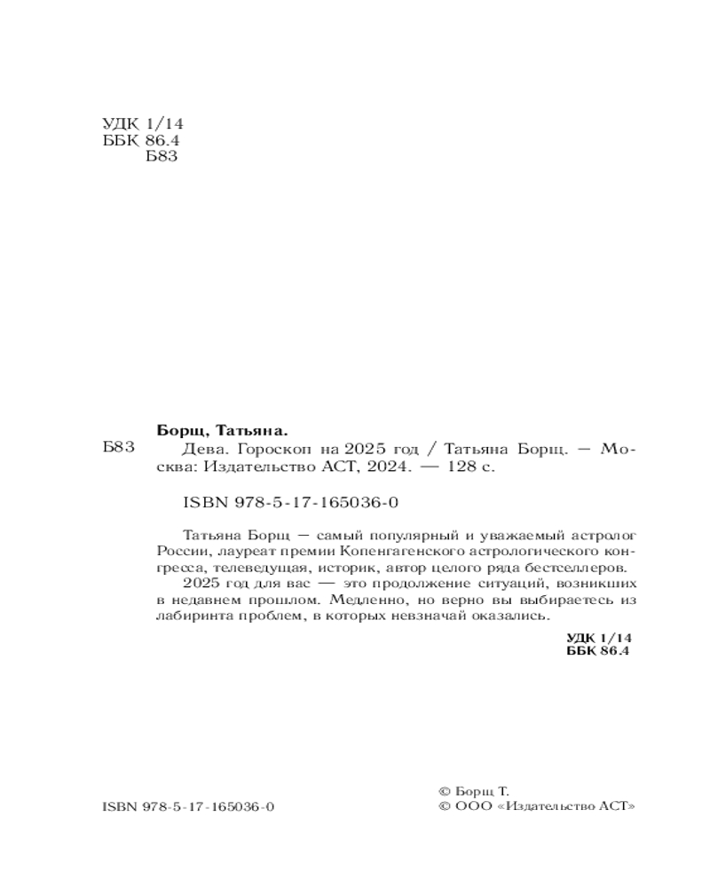 | Дева. Гороскоп на 2025 год Татьяна Юрьевна Борщ