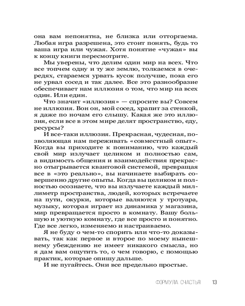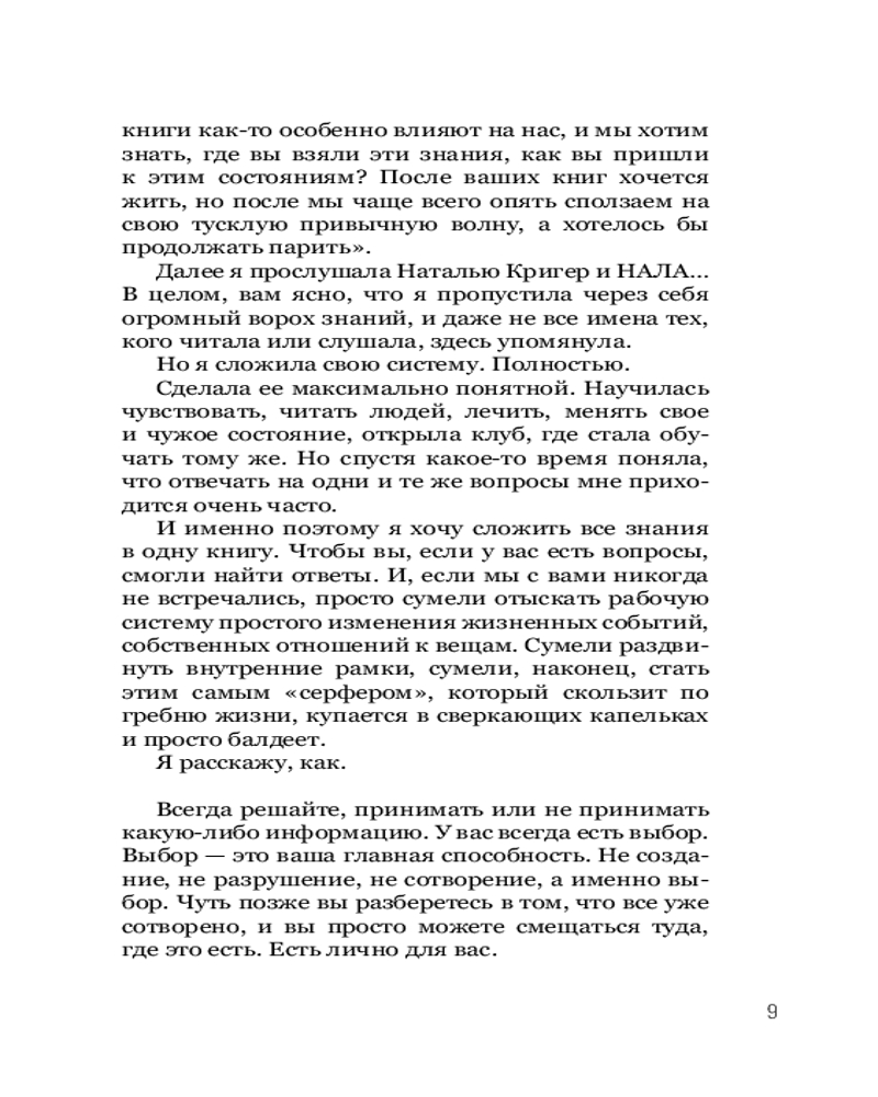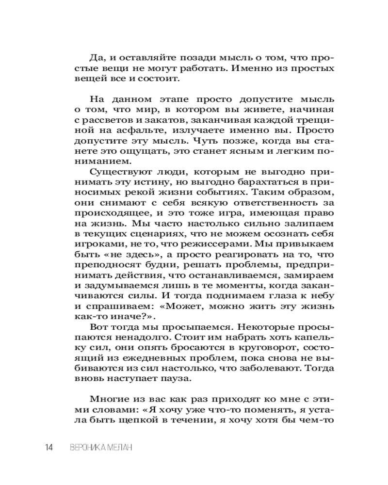 В данный момент этот товар отсутствует в продаже. Возможно, у нас найдется аналогичный или похожий товар здесь. Серия: Практики счастья и успеха В детстве мы помним и знаем, что красивы и уникальны. Но во взрослом возрасте, подверженные быту и влиянию чужого мнения, забываем о чувстве уникальности и теряем мечту о могуществе. И лишь тогда, когда события жизненного ряда выстраиваются невыгодным для нас образом, замедляем спешку и задумываемся: