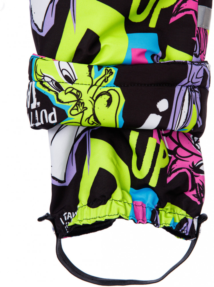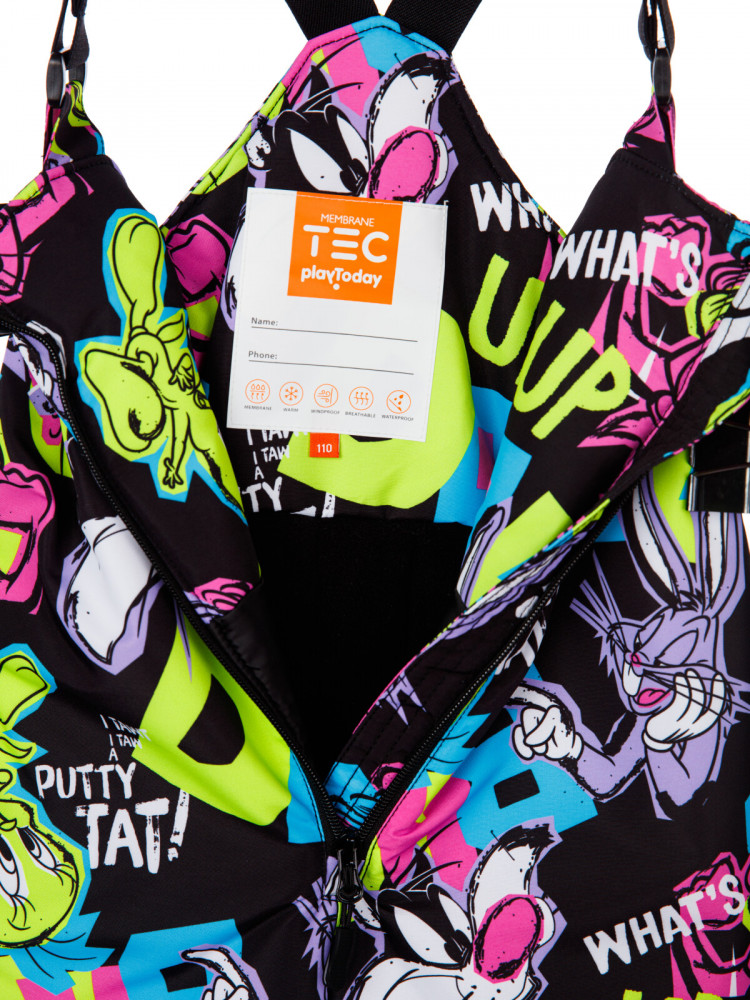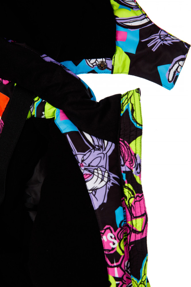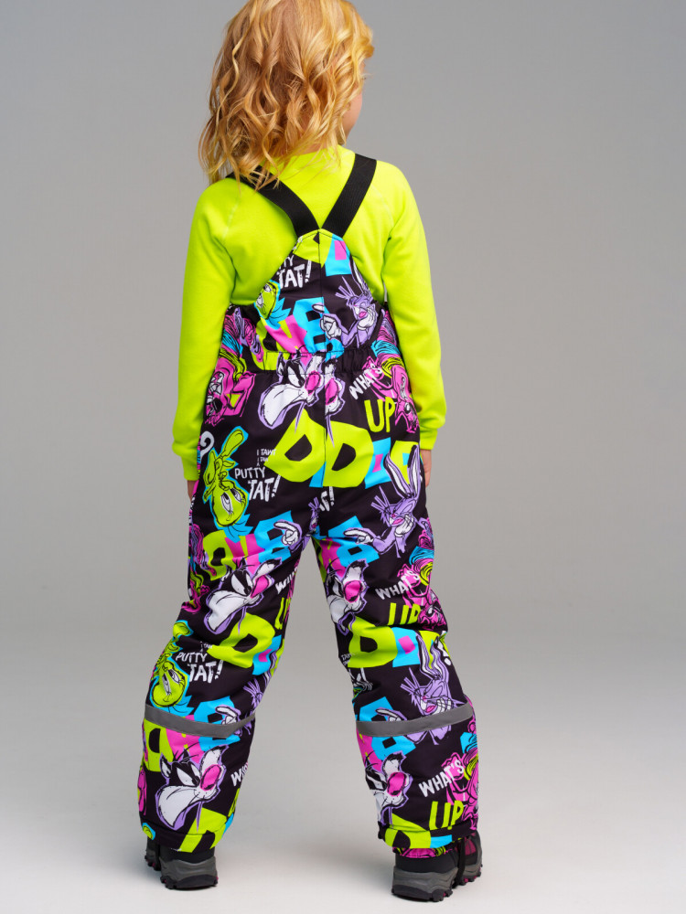 Полукомбинезон: утеплитель 180 г/м, подкладка — флис. Снегозащитный манжет на брюках с резинкой Snow stopper. Резинка по спинке, штрипки.
