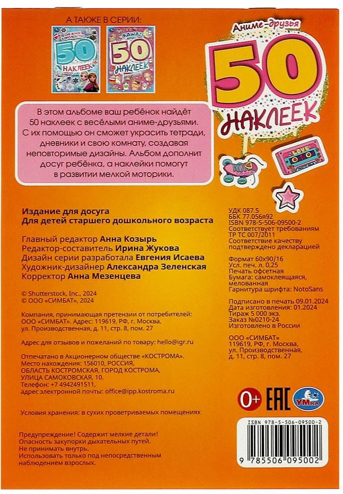 Серия: 50 наклеек Альбом наклеек «Аниме-друзья» из серии «50 наклеек» ТМ «УМка» непременно понравится ребёнку: |