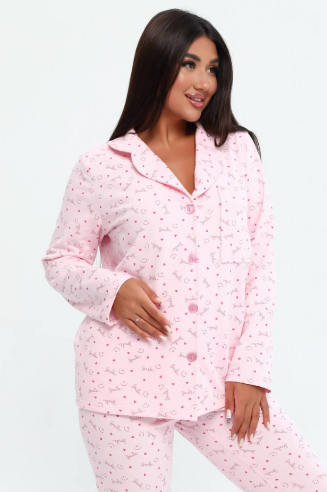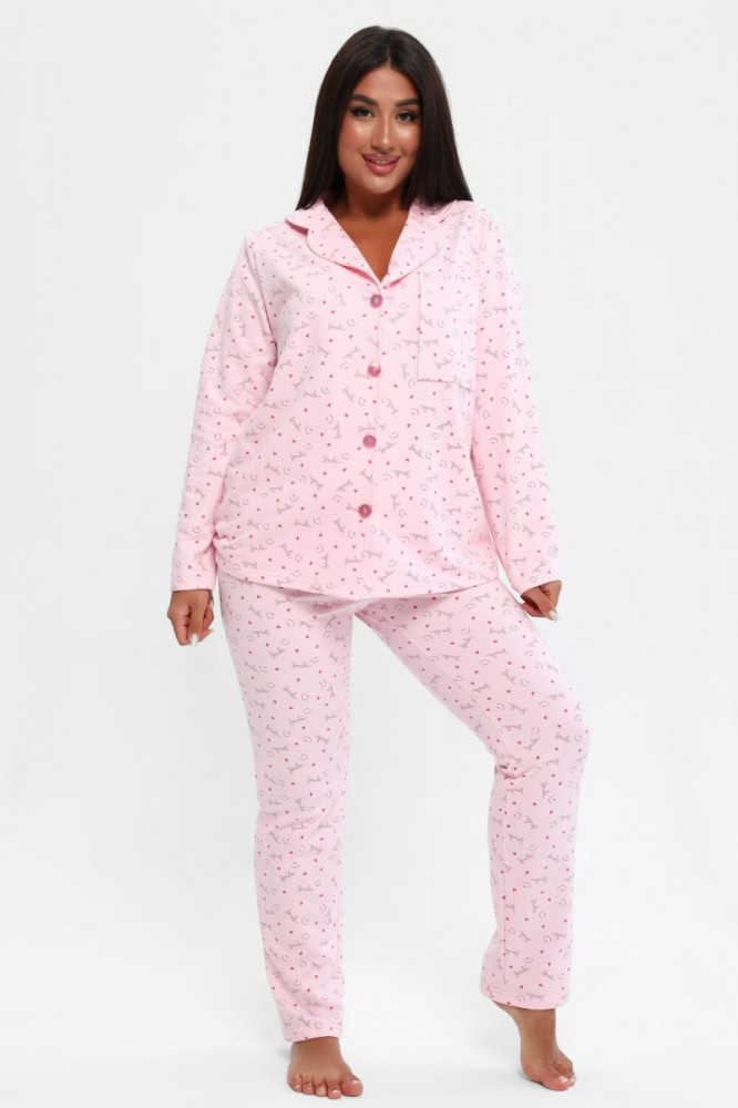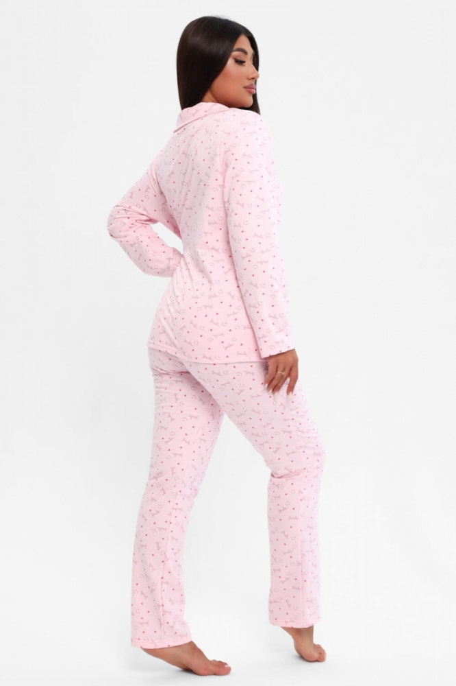Девушки обожают наряжаться не только днем, но и ночью. Именно стильная и красивая пижама позволяет чувствовать себя круглосуточно привлекательной. Стоит напомнить, что от этого изделия зависит не только ваше хорошее настроение, но и качество сна. Модель позволит Вам сбросить накопленное напряжение за целый день и хорошо уснуть. Нежный цвет в сочетании с принтом подарит Вам ощущение спокойствия и уюта.