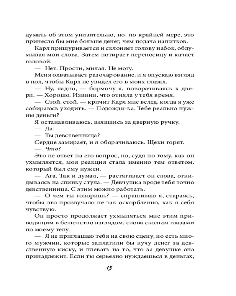 Серия: Freedom. Прекрасные дьяволы. Темные романы Евы Эшвуд Я всегда была невидимкой. Но они меня заметили. Всю свою жизнь я могла положиться только на себя: мои родители мертвы, приемной матери не до меня, девчонки в кампусе травят за шрамы. Отчаянно нуждаясь в деньгах, я решаюсь продать единственное, что у меня есть — невинность. В ту ночь, когда я должна была отдаться жестокому мафиози, в номер, словно темные тени, ворвались трое парней и убили его прежде, чем он успел ко мне прикоснуться. Я была уверена: теперь умру и я. Но они оставляют меня в живых. Трое опасных братьев сделают все, чтобы я держала язык за зубами, даже если ради этого придется следить за каждым моим шагом. Каким-то образом для каждого из них я становлюсь чем-то большим. Страстным желанием. Навязчивой идеей. Искушением. Как бы сильно я ни пыталась отрицать пугающее влечение, которое пульсирует между нами, я знаю: если не найду выход из этой запутанной игры, их тьма меня поглотит. |