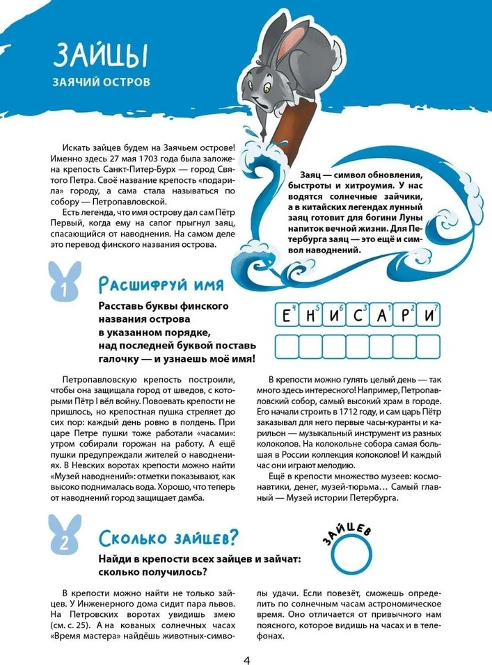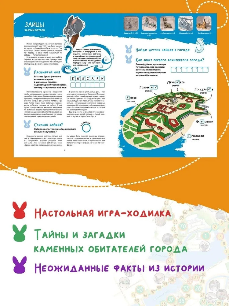 Серия: Прогулка-квест Зоо-квест — это игра, которая проведет вас по самым интересным местам Санкт-Петербурга. Вы найдете каменных котов, собак, львов, коней, птиц и многих других обитателей города. Обычная прогулка превратится в увлекательное приключение для детей и взрослых! Компанию вам составит веселый заяц. Он живет около Заячьего острова и исполняет заветные желания. Вас ждет множество неожиданных открытий, 55 увлекательных заданий и настольная игра-ходилка, которую можно использовать как маршрут для настоящей прогулки-квеста. |