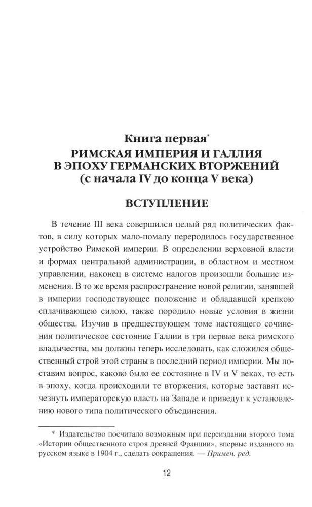 Германское вторжение и конец империиВ данный момент этот товар отсутствует в продаже. Возможно, у нас найдется аналогичный или похожий товар здесь. Серия: Античный мир В настоящем издании представлен второй том фундаментального труда «История общественного строя древней Франции» выдающегося французского историка XIX в. Нюма Дени Фюстеля де Куланжа. Книга рассказывает о IV–V вв. н.э. — сложном периоде существования Римской Галлии и самой империи. В это время в Галлии появляется могущественная аристократия. Императоры еще существуют, но повиновение им исчезает, и перевес склоняется на сторону крупных земельных собственников. Однако это сословие не умело ни бороться, ни повелевать. В этот период варвары в лице германских племен более, чем когда-либо, стали угрожать Галлии. В империю хлынули разрозненные отряды, чрезвычайная подвижность которых приводила в недоумение римских военачальников. Многие отряды варваров прошли через всю Галлию, грабя ее. Единственными племенами, которым удалось поселиться в ней, были вестготы, бургунды и франки. Вестготы заняли юго-западные земли, бургунды — бассейн Роны, а франки обосновались на севере Галлии. Все это произошло по соглашению с римлянами. Официально они были римскими солдатами, а не завоевателями. Гости-варвары, как их называли, бывали часто опасны, иногда полезны, но они не были хозяевами. |