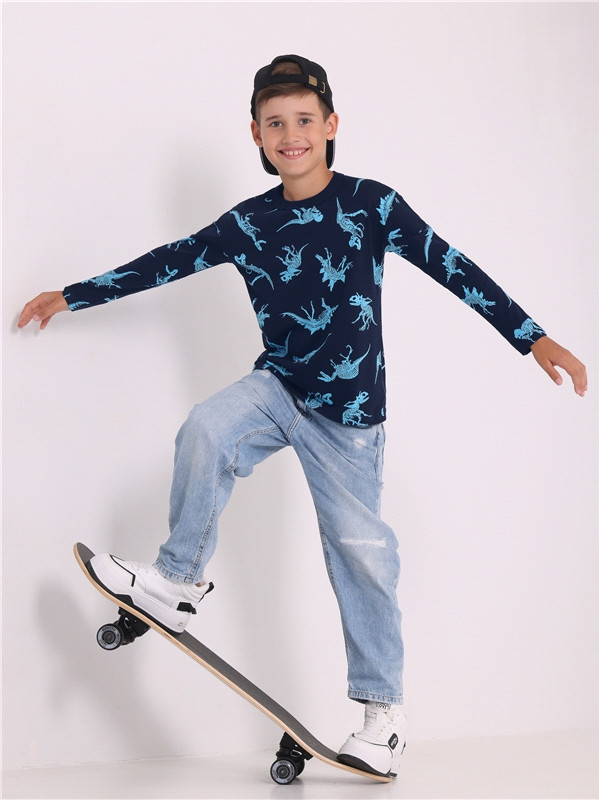 Название цвета: скелеты динозавров на темно-синем/темно-синий