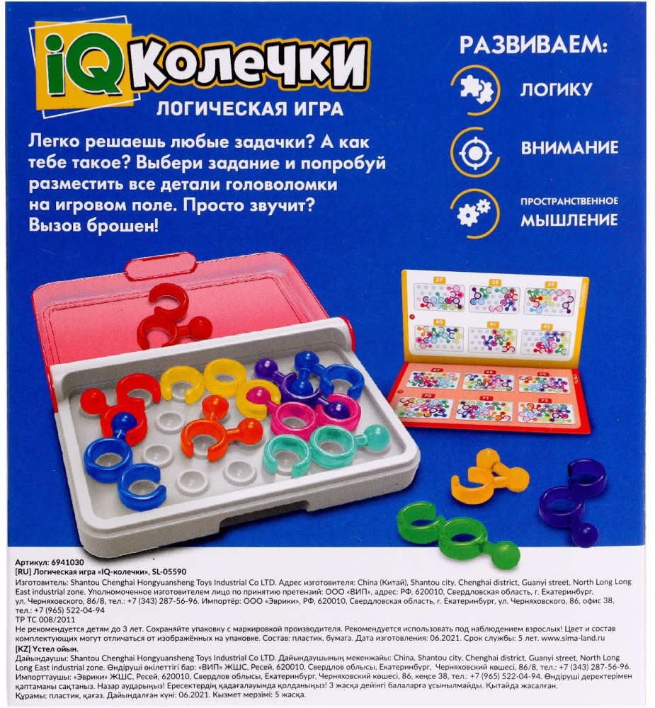Серия: Игры-головоломки «IQ-колечки» — Настольная игра для детей от 7 лет. Увлекательная настолка соберёт всю семью за одним столом и поможет весело провести время. Такое развлечение надолго увлечёт непоседу, развивая мелкую моторику и логическое мышление. |