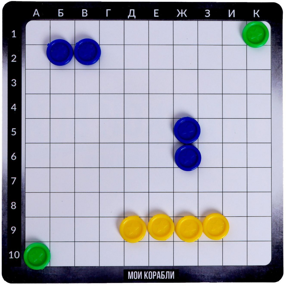 Перед мореходами стоит стратегически важная задача: расположить корабли на поле таким образом, чтобы противнику было как можно сложнее распознать их местонахождение. Суда могут быть расставлены в хаотичном порядке: горизонтально, вертикально или по краю. Главное, чтобы между ними было расстояние не менее одной точки поля, т. е. пересекаться им ни в коем случае нельзя! Корабли выделяются чёрным маркером на поле с подставкой. Каждый из игроков предполагает координаты их нахождения у соперника. При успешном попадании на карточке необходимо отмечать свою маленькую победу жетоном, а при поражении – крестиком красным маркером. Цель игры — уничтожить все корабли соперника и сохранить при этом свой флот! В конце боя каждый из мореплавателей вправе запросить у противника его поле, чтобы сверить свои удары. Не расстраивайтесь при поражении и не задирайте нос при победе! Игра имеет так много вариаций событий, что ее исход может измениться в следующей партии. Всё зависит только от вас! Вперёд, отважные капитаны!