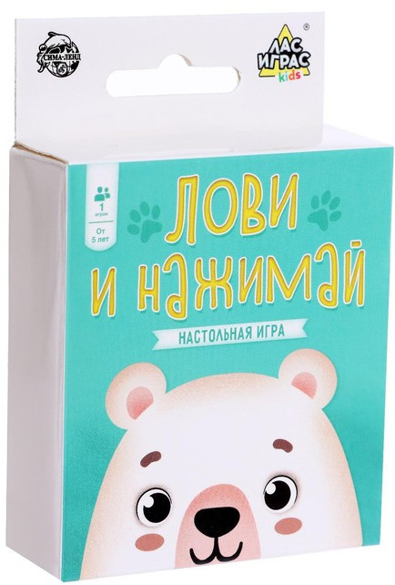 «Лови и нажимай» — это настольная игра на память и ловкость. Ребёнку необходимо быстро нажать на ту кнопку, которая начинает светиться. Игрушка светится и воспроизводит звук.