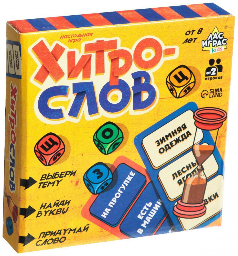 Серия: Игры в слова «Хитрослов» — необычная настольная игра на составление слов. Вам предстоит придумывать слова на заданные темы, но так, чтобы в них некоторые буквы были на строго определённом месте! |