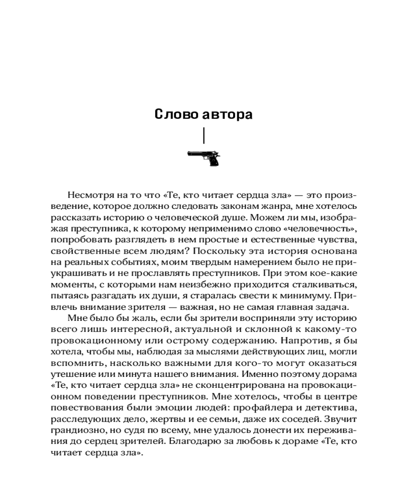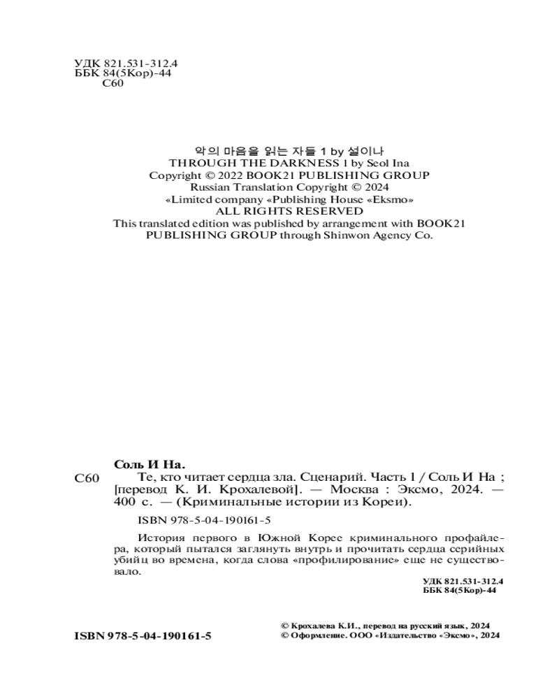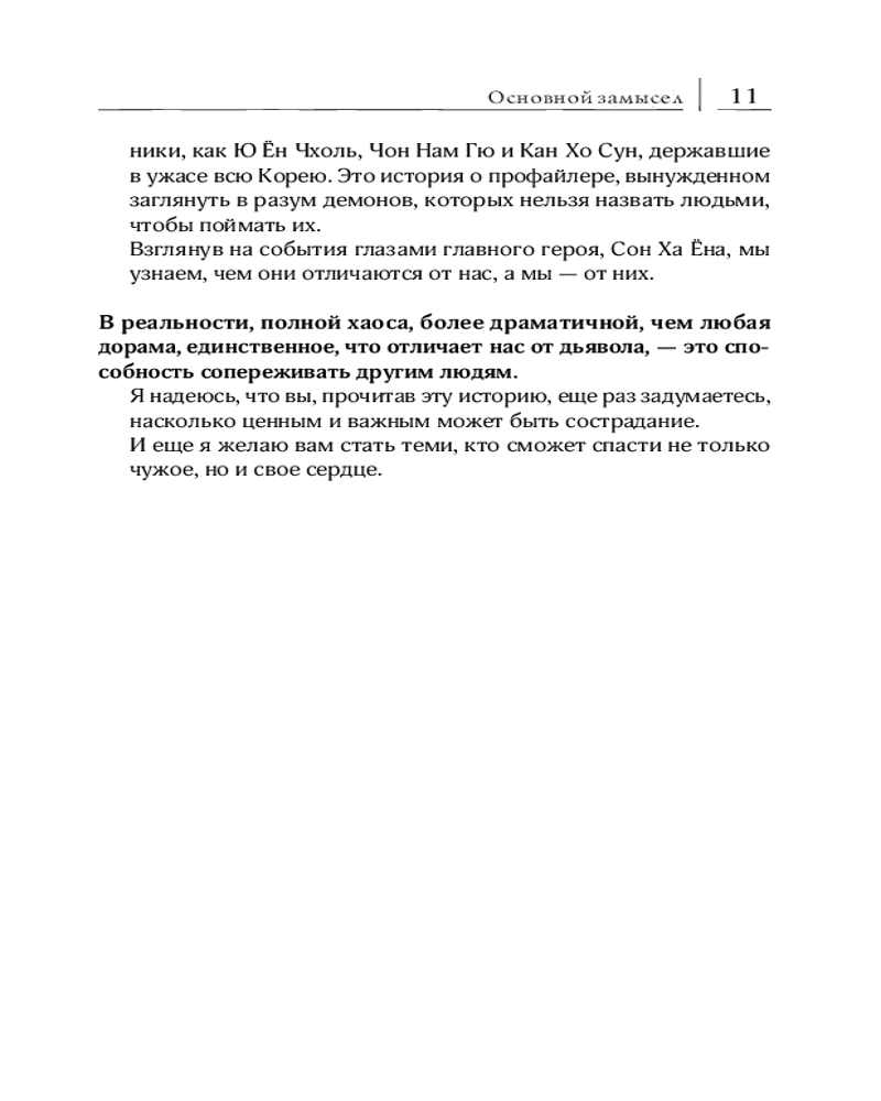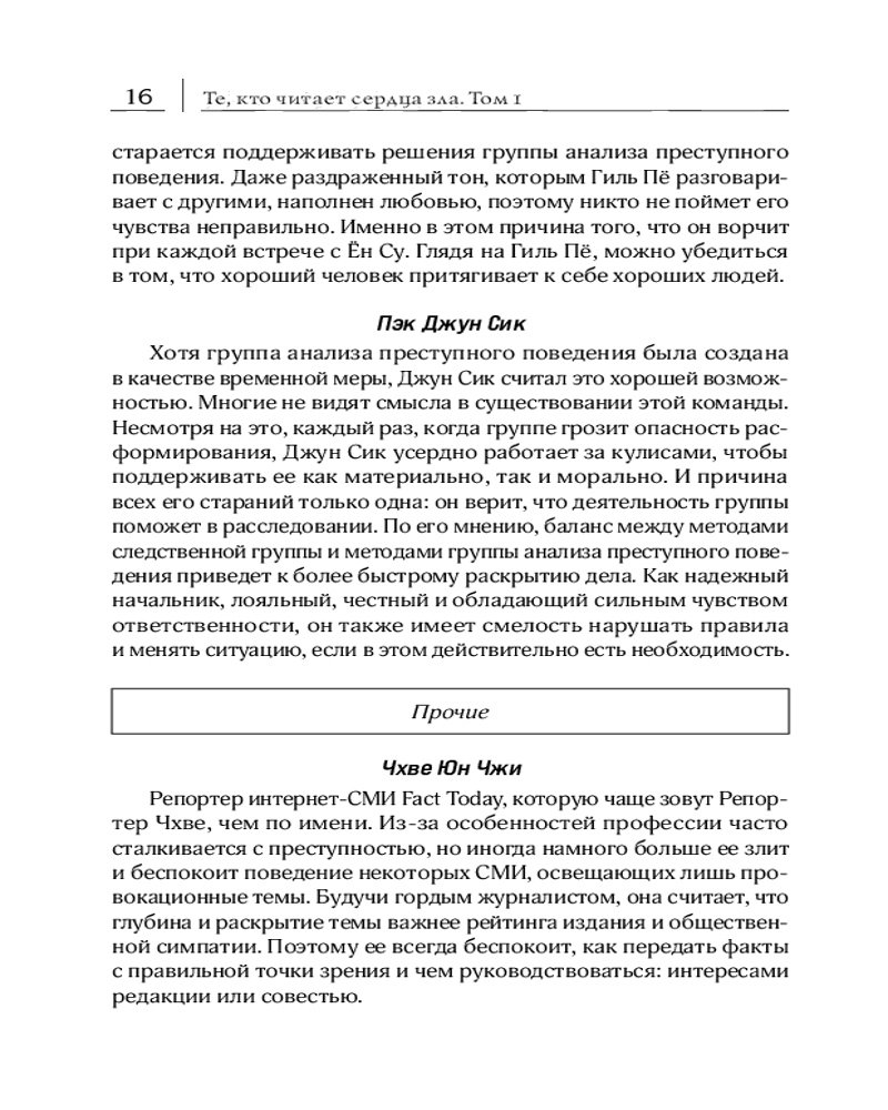 Серия: Криминальные истории из Кореи Первая часть сценария популярной корейской дорамы «Те, кто читает сердца зла». № 1 в рейтинге дорам, транслировавшихся в 2022 году по пятницам и субботам! Главные роли исполнили Ким Нам Гиль («Вспыльчивый священник», «Остров»), Чжин Сон Гю («Королевство», «Винченцо», «Демон»), Ким Со Джин («Линчеватель»). Дорама «Те, кто читает сердца зла» получила награду в категории «Лучший драматический сериал» на 27-й церемонии вручения наград Asian Television Awards. За роль Сон Ха Ёна Ким Нам Гиль получил Дэсан на SBS Drama Award 2022. На основе одноименной книги профайлера Квон Иль Ёна и писателя Го На Му. |