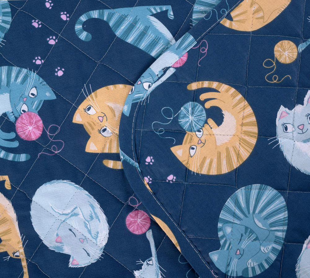 Роскошное стеганое покрывало на кровать с оригинальным рисунком станет украшением любой спальни. Покрывало двухстороннее — можно переворачивать под настроение! Ткань верха из плотного перкаля — матовая, легкая, приятная на ощупь. В составе только 100% хлопок. Активные красители на 100% безопасные и стойкие: цвета не потускнеют даже после множества стирок. Подходит владельцам домашних питомцев: на покрывале не остается зацепок.