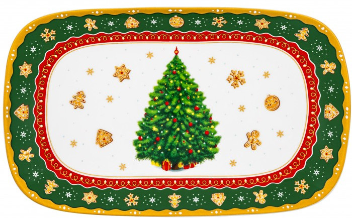 Прямоугольное блюдо Elan Gallery выполнено из фарфора нового поколения new bone china. Благодаря современным технологиям он не уступает другим видам фарфора в прочности, но при этом экологичнее в производстве. Дизайнерская коллекция посуды от бренда Elan Gallery украшена изображением пушистой ёлочки и узором из имбирных пряников и снежинок. Она создаст в вашем доме атмосферу волшебства и подарит праздничное настроение.