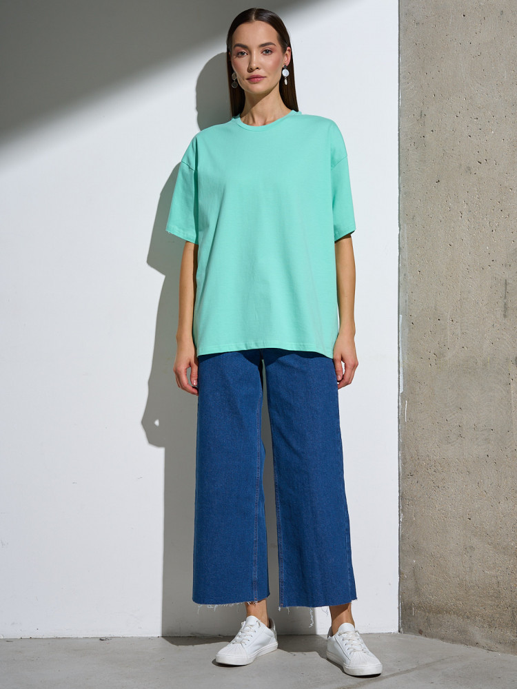 Отличная базовая футболка. Не короткая и не длинная - то что нужно. Оверсайз можно на размер меньше взять