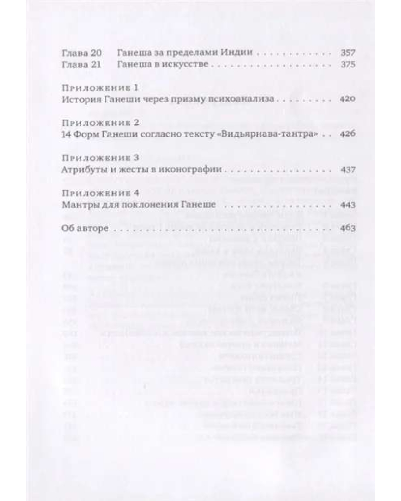 В книге на разнообразном материале прослеживается возникновение культа и образа Ганеши, его истоки и мифологическая история (в частности, история появления на свет и отношения с семьей, причины его необычной внешности и вопросы, касающиеся женитьбы и отцовства), рассматриваются основные функции и особенности его почитания, иконографические каноны, атрибуты и символика, уделяется внимание особенностям его изображения в искусстве, а также то положение, которое Ганеша занимает в джайнизме и буддизме. |