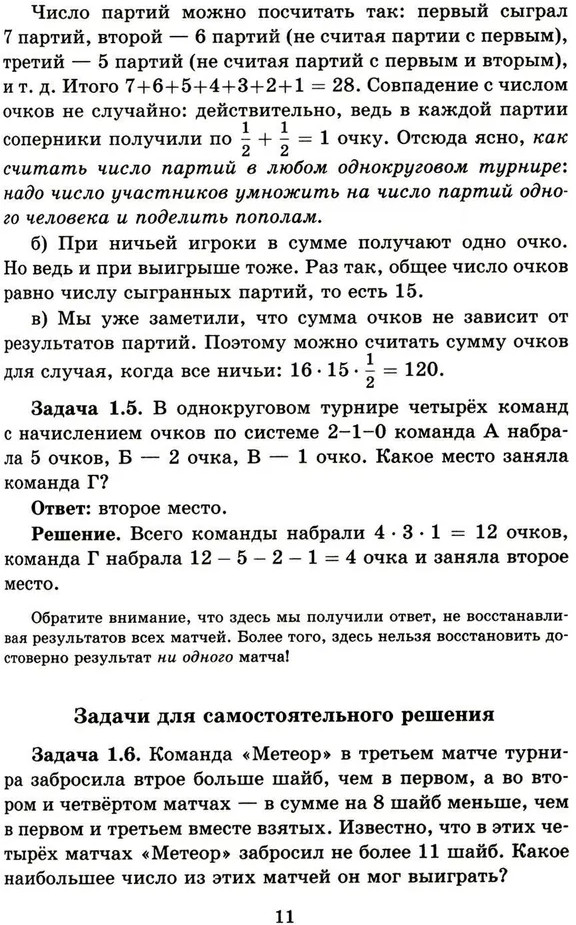 Задачи о турнирахБорис Рафаилович Френкин, Алексей Александрович Заславский, Александр Васильевич Шаповалов В данный момент этот товар отсутствует в продаже. Возможно, у нас найдется аналогичный или похожий товар здесь. Серия: Школьные Математические Кружки Десятая книжка из серии «Школьные математические кружки» посвящена задачам о спортивных турнирах и ориентирована в первую очередь на школьников 6-9 классов. В неё вошли разработки шести занятий математического кружка, а также более 50 дополнительных задач разной сложности. Первые три занятия рассчитаны на начинающих школьников, следующие три — на более подготовленных. |