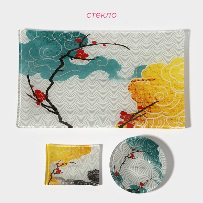Набор для суши Доляна изготовлен из качественного стекла. Набор включает в себя подставку для суши и два соусника. Такая посуда прекрасно дополнит сервировку в классическом или азиатском стиле и станет отличным подарком близкому человеку.