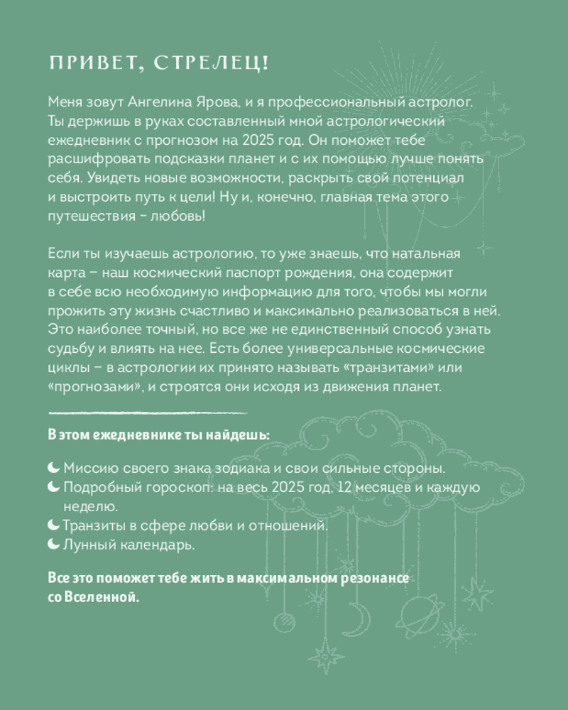 Гороскоп на 2025 год. Стрелец. ЕжедневникВ данный момент этот товар отсутствует в продаже. Возможно, у нас найдется аналогичный или похожий товар здесь. Серия: Новый Год. Подарочные ежедневники. Знаки зодиака В 2025 году Стрельцам придется серьезно задуматься о том, как достичь своих грандиозных целей. Один из знаков Зодиака сможет оказать в этом неоценимую помощь — вот только кто? А в личной жизни будет череда приятных сюрпризов. Надо лишь довериться течению жизни и подсказкам планет. |