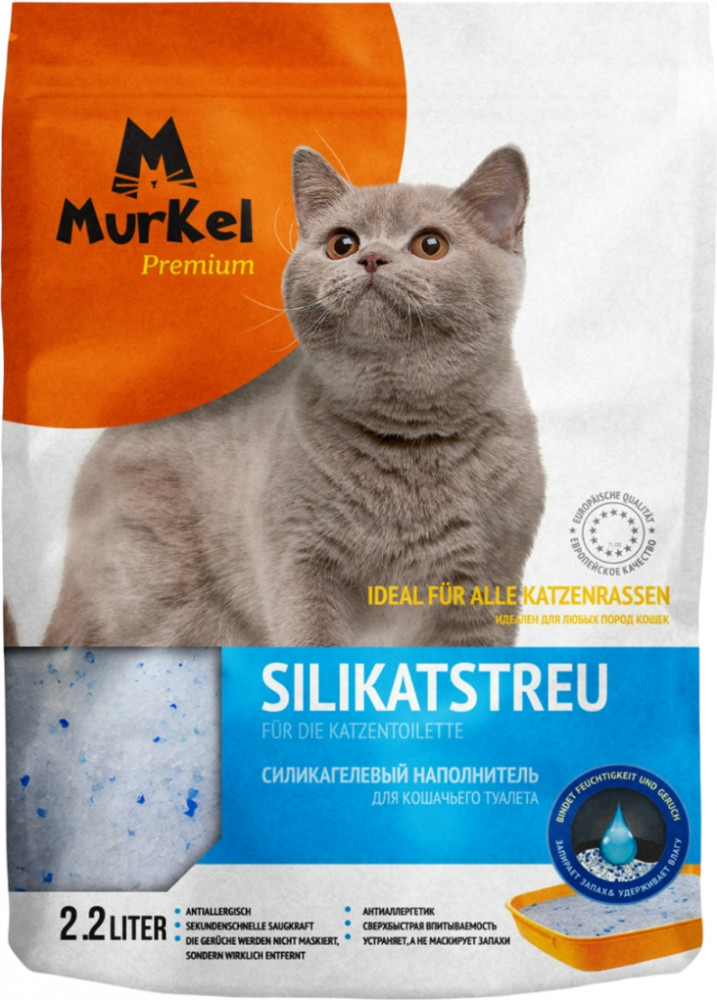 Этот наполнитель изготавливается из гидратированной двуокиси кремния. Выглядит как стеклянные кристаллы, твёрдые, неправильной формы, а на ощупь напоминают пластик. Благодаря специфической структуре, поглощают мочу и накапливают её внутри гранул. Изменение цвета с прозрачного на желтый свидетельствует о том, что требуется замена наполнителя. На новый субстрат меняется всё содержимое лотка сразу. Меняется один-два раза в месяц, безвредный, препятствует распространению запаха, быстро впитывает влагу, всегда остается сухим, в нем не размножаются бактерии, не разносится, не пылит.