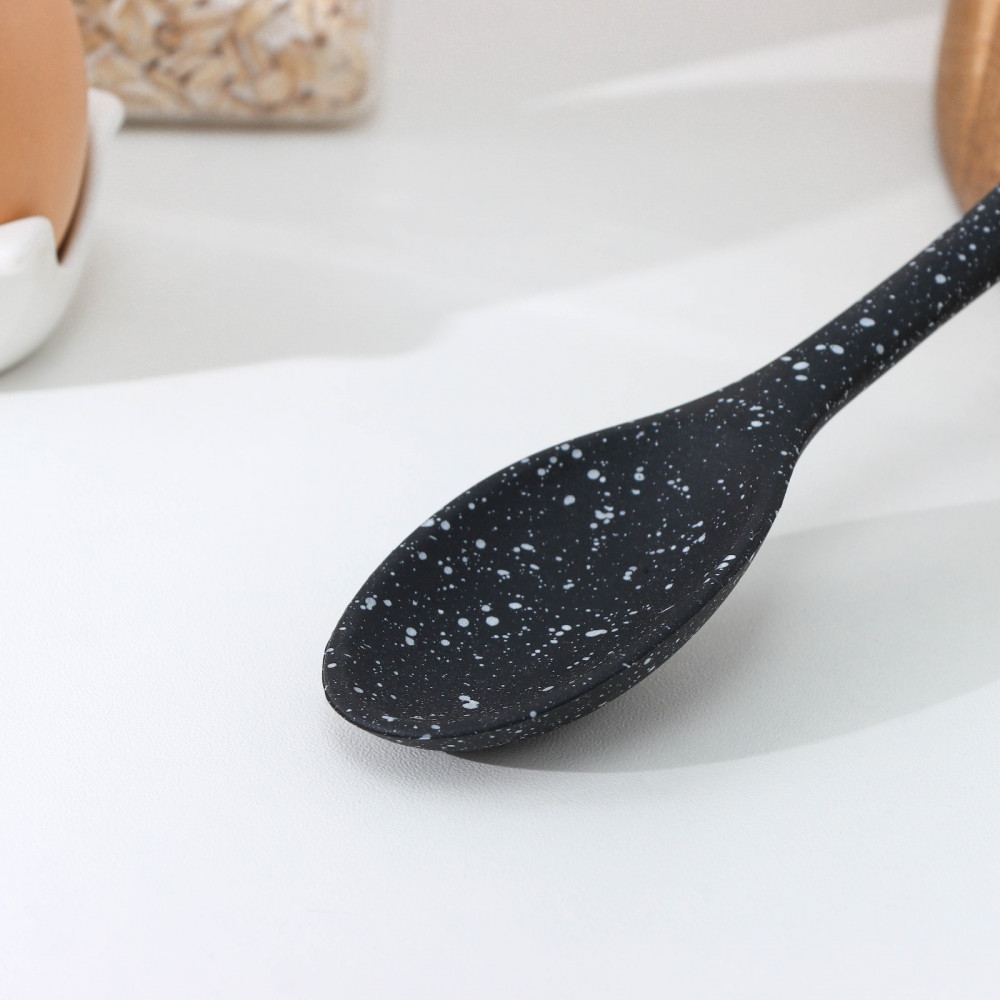 Гарнирная ложка — это удобный и практичный кухонный инструмент. Она является неотъемлемой частью поварской утвари, которая незаменима на любой кухне. Ложка выполнена из силикона, который не оставляет царапин на поверхности антипригарной посуды. Она легкая, имеет очень удобную эргономичную ручку, которая обеспечивает удобный хват. Легко чистится и быстро сохнет, что позволяет экономить время и энергию на кухне. |