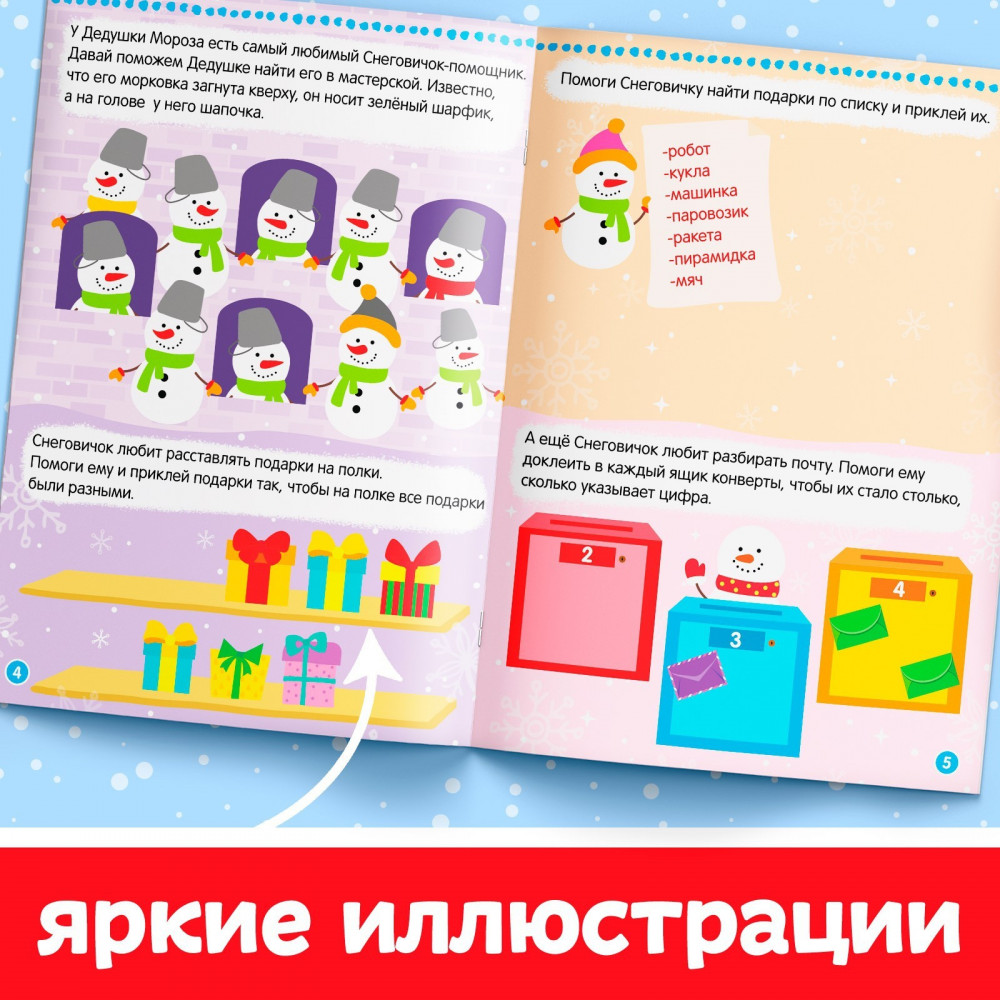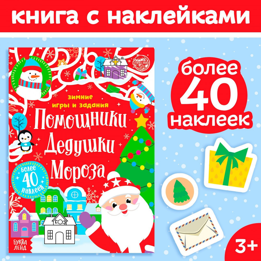 Помощники Дедушки Мороза. Зимние игры и заданияВ данный момент этот товар отсутствует в продаже. Возможно, у нас найдется аналогичный или похожий товар здесь. Серия: Новогодние книги Буква-Ленд Книжка с наклейками и весёлыми заданиями поможет скрасить время в ожидании праздника и потренировать полезные навыки. Внутри ребёнок найдёт интересные задания: ему предстоит лепить снеговичков, украшать ёлку с помощью наклеек, искать отличия на картинках и много других увлекательных миссий. Наклейки находятся на отдельном листе. На нём есть подсказки, на какую именно страничку крепить ту или иную наклейку. Книжку небольшого формата удобно брать с собой, например в дорогу, чтобы скоротать время. Решая задания и прикрепляя наклейки, малыш тренирует аккуратность, усидчивость, развивает логическое мышление и мелкую моторику рук. |